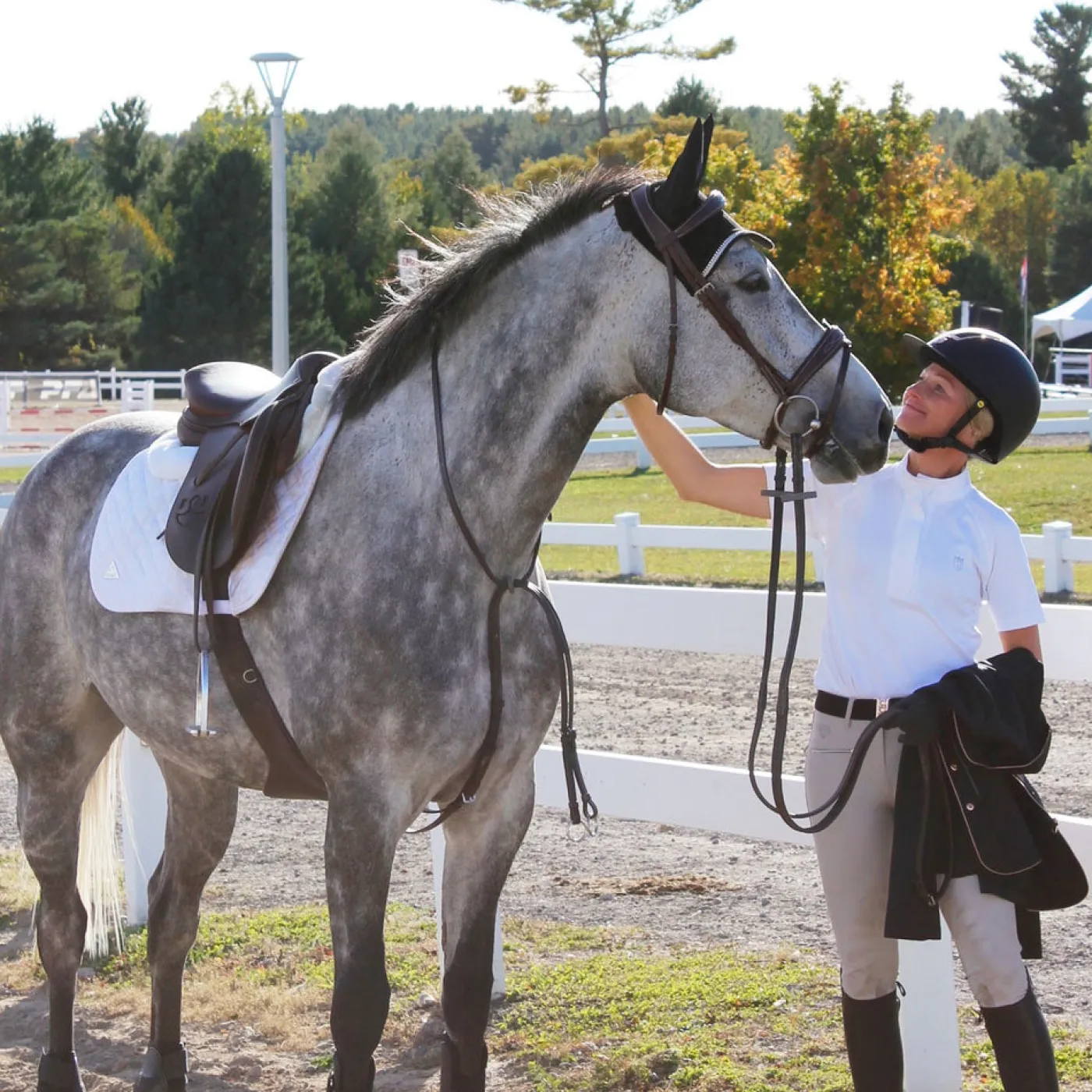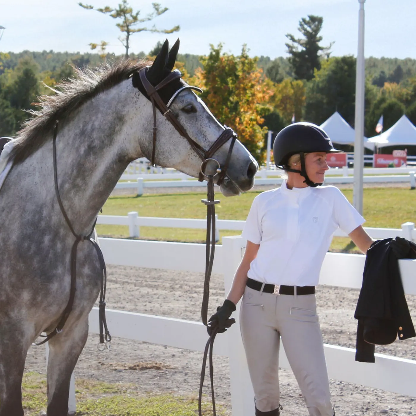Exclusive to Greenhawk, this stylish short sleeve short shirt features a lace cut out detail in the back and a hidden zip closure in the front. Made from comfortable, stretchy fabric the provides UV protection, a great choice for your summer show shirt collection.