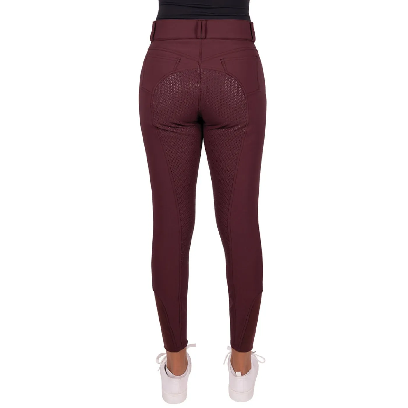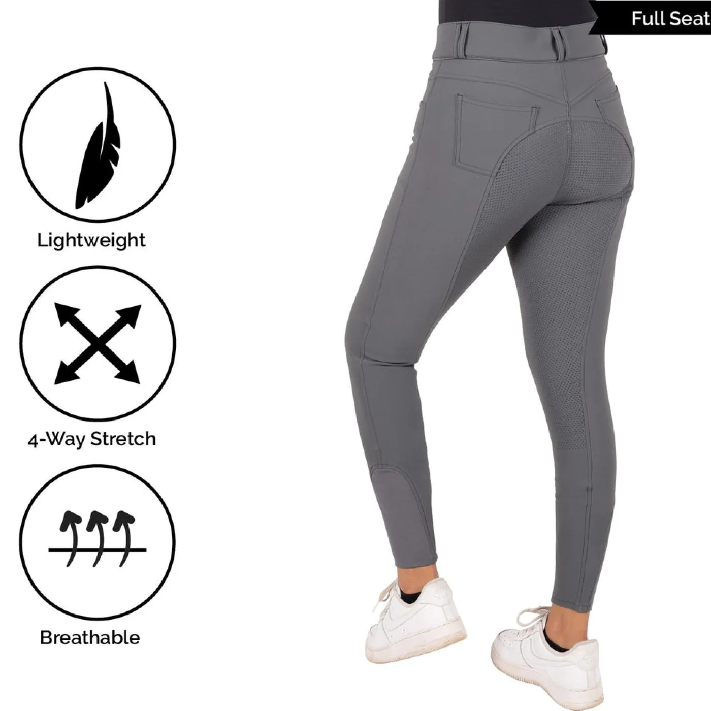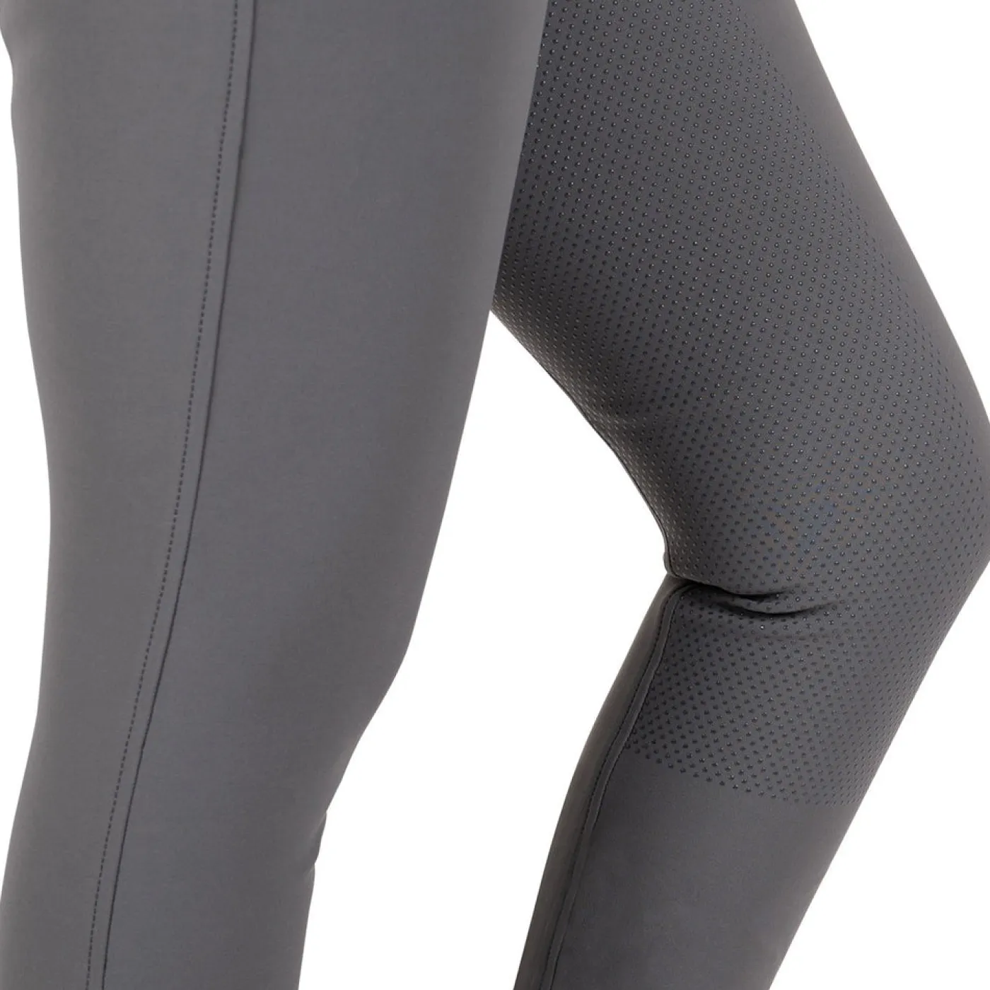 The Elation Platinum Hudson High Rise Full Seat Breech offers fashion forward styling and a European cut in a lighter weight technical fabric with excellent 4-way stretch for everyday schooling or in the show ring. The silicone full seat is combined with a slightly wider, two button Gutos closure waistband. Visually stunning, the Hudson is complete with Demi-cut Sport Stretch™ ankles for a smooth, snug fit, front and back pockets, double belt loops in a contrast stitch and front zipper.