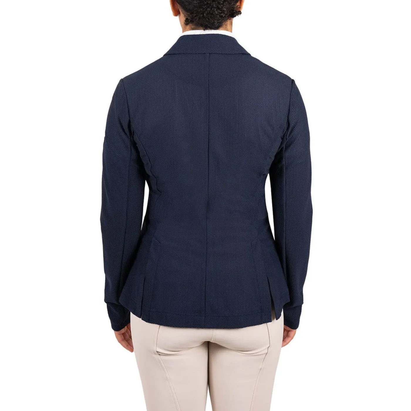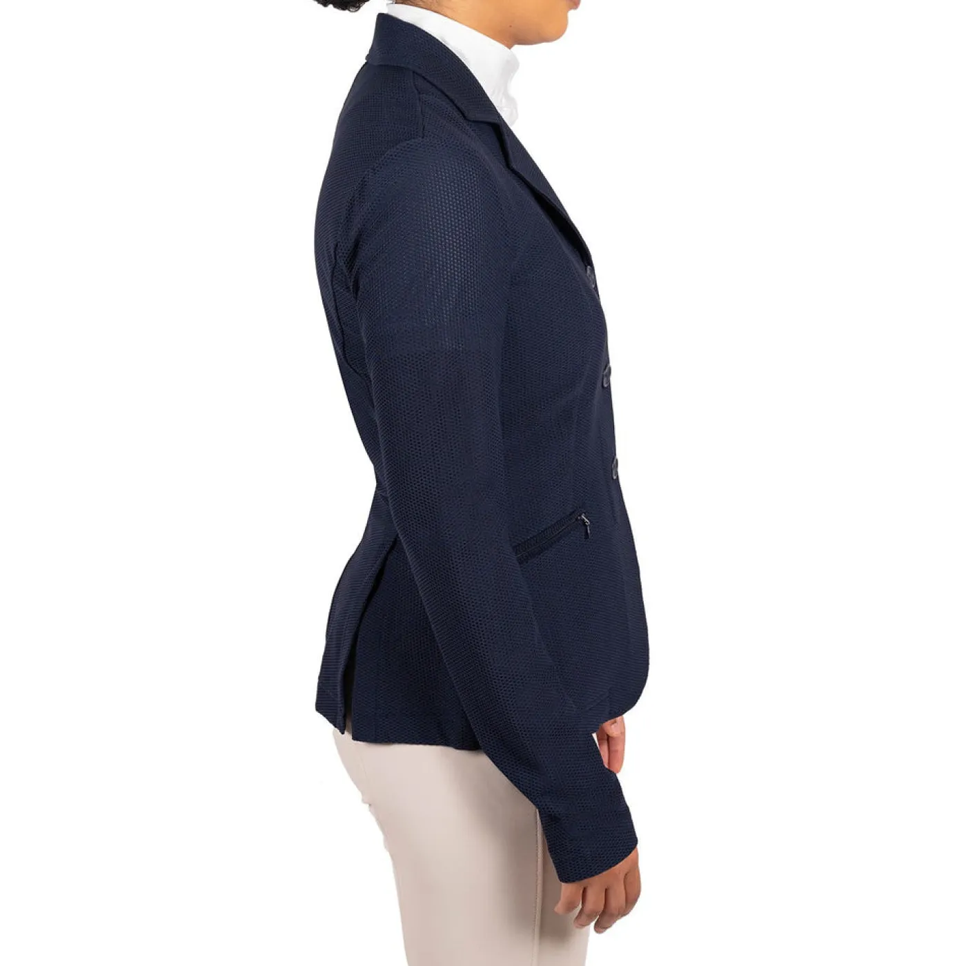 The Elation Platinum Ravello Show Jacket combines function with style, to help keep you cool and comfortable in the show ring. Constructed with breathable, stretch mesh for added mobility, and a double vented back to help keep you cool. Featuring a zip closure with buttons at the front, and functional pockets to hold ringside accessories including gloves.