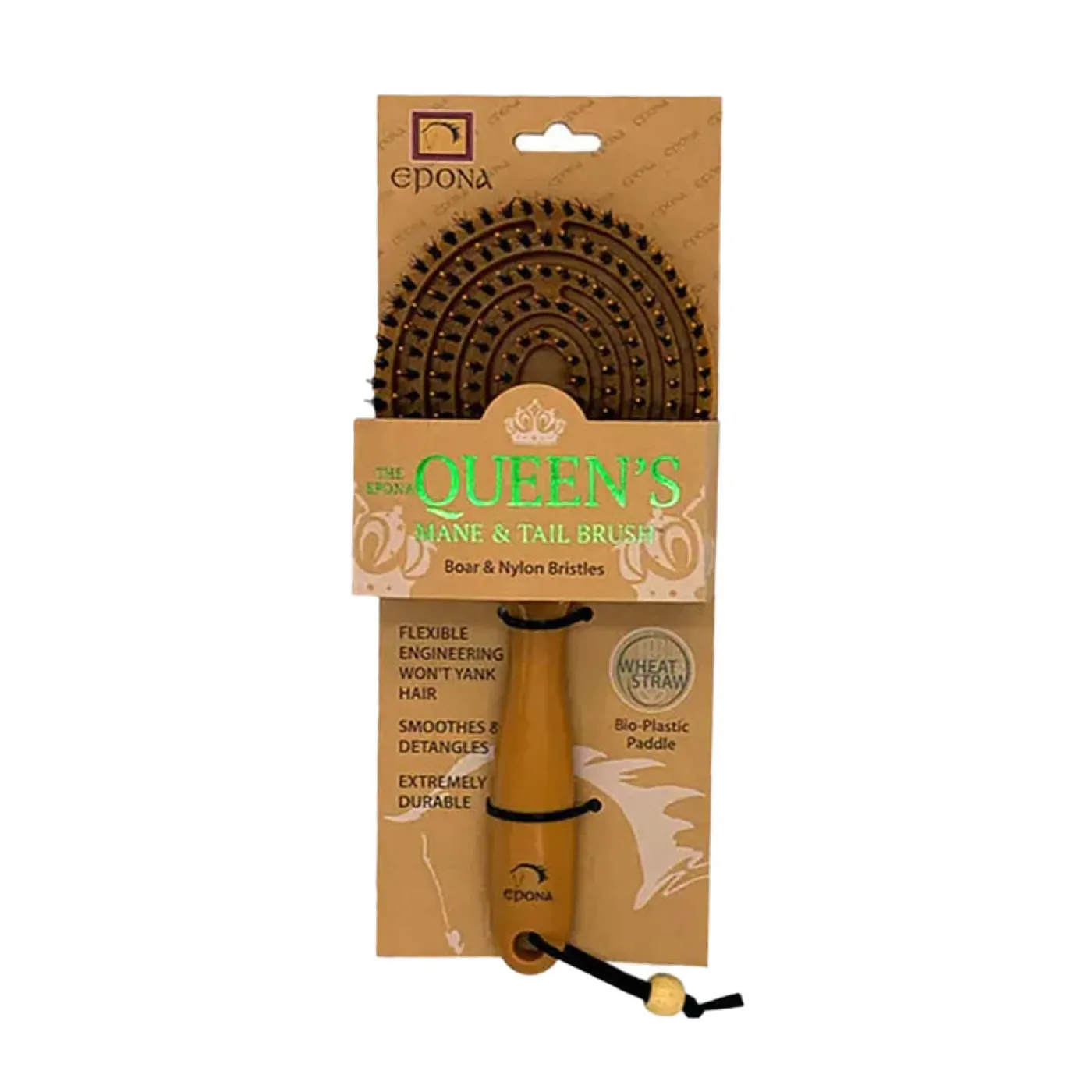 Made from boar hair and nylon bristle to untangle, polish, and smooth through manes and tails. Features an eco-friendly bio-plastic wheat straw base that is durable and lightweight.