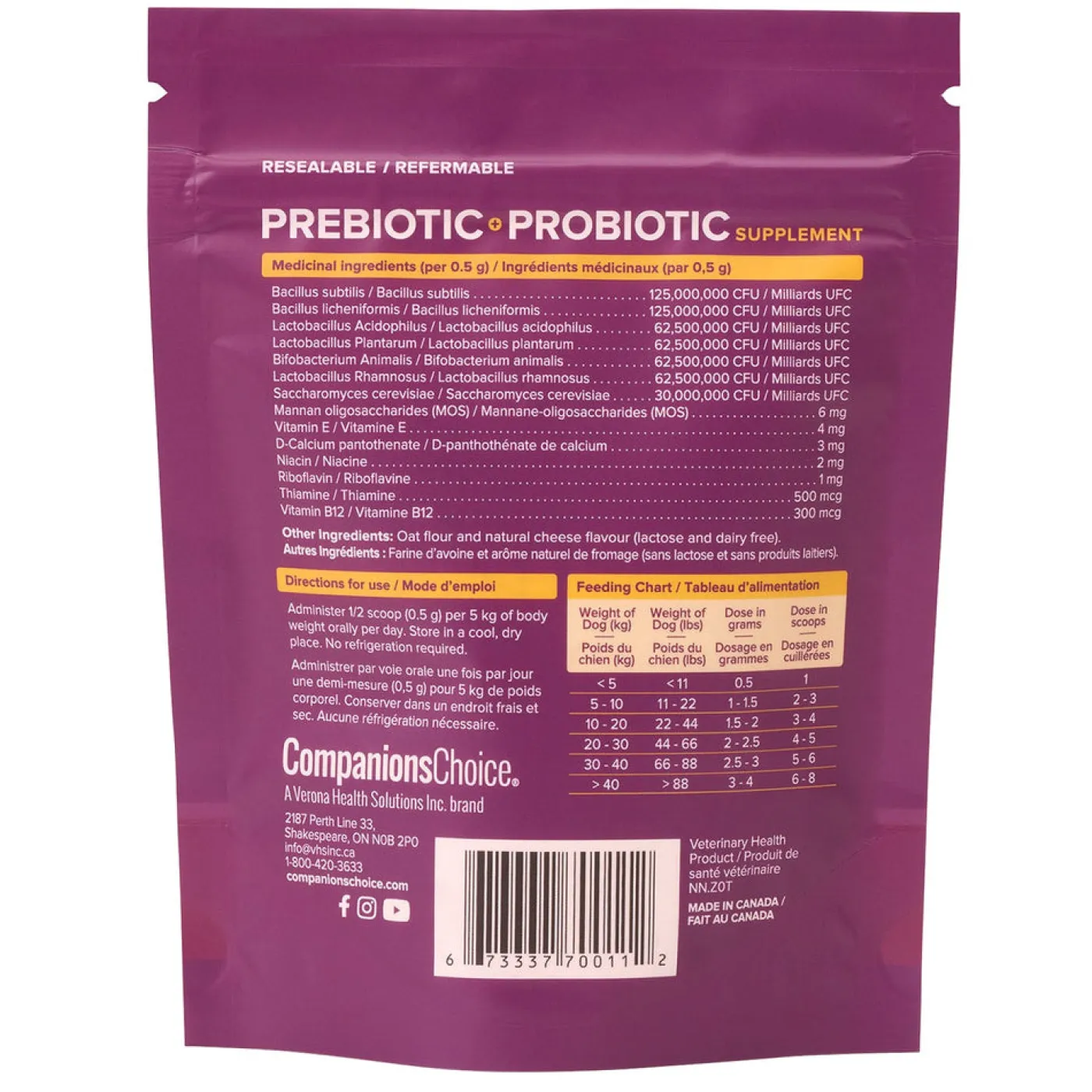 Companion’s Choice Prebiotic & Probiotic is used to naturally maintain digestive health. Can be used for cats or dogs.