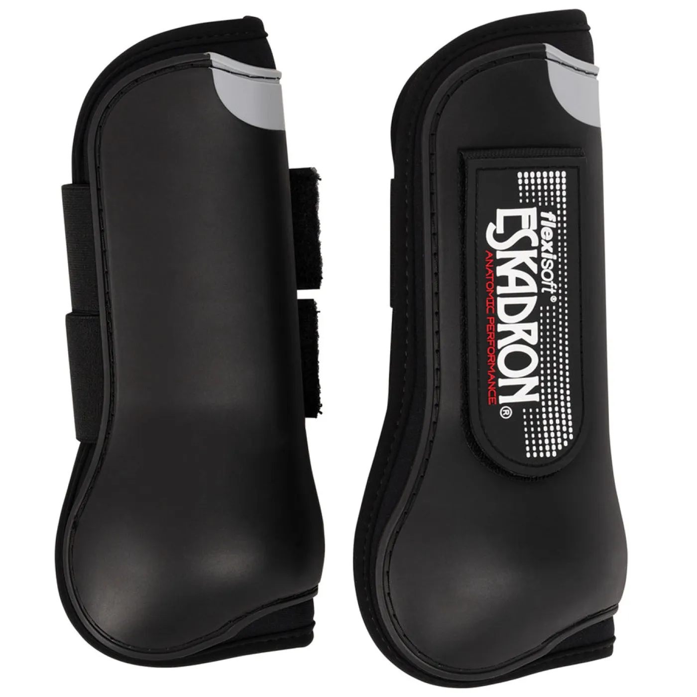 Anatomically contoured to fit your horse’s leg comfortably, the Eskadron Flexisoft Open Front Boots are constructed of a hard outer shell and a soft neoprene lining. Velcro fastenings help keep the boot in place during turnout or while under saddle.