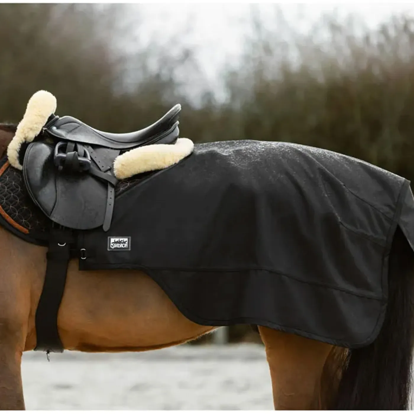Offers a 2-in-1 sheet made of 840 denier oxford material. Features a fleece backed lining and InnoStrap for fixation at the saddle or lunging girth. Complete with a large tail flap and PVC cover.