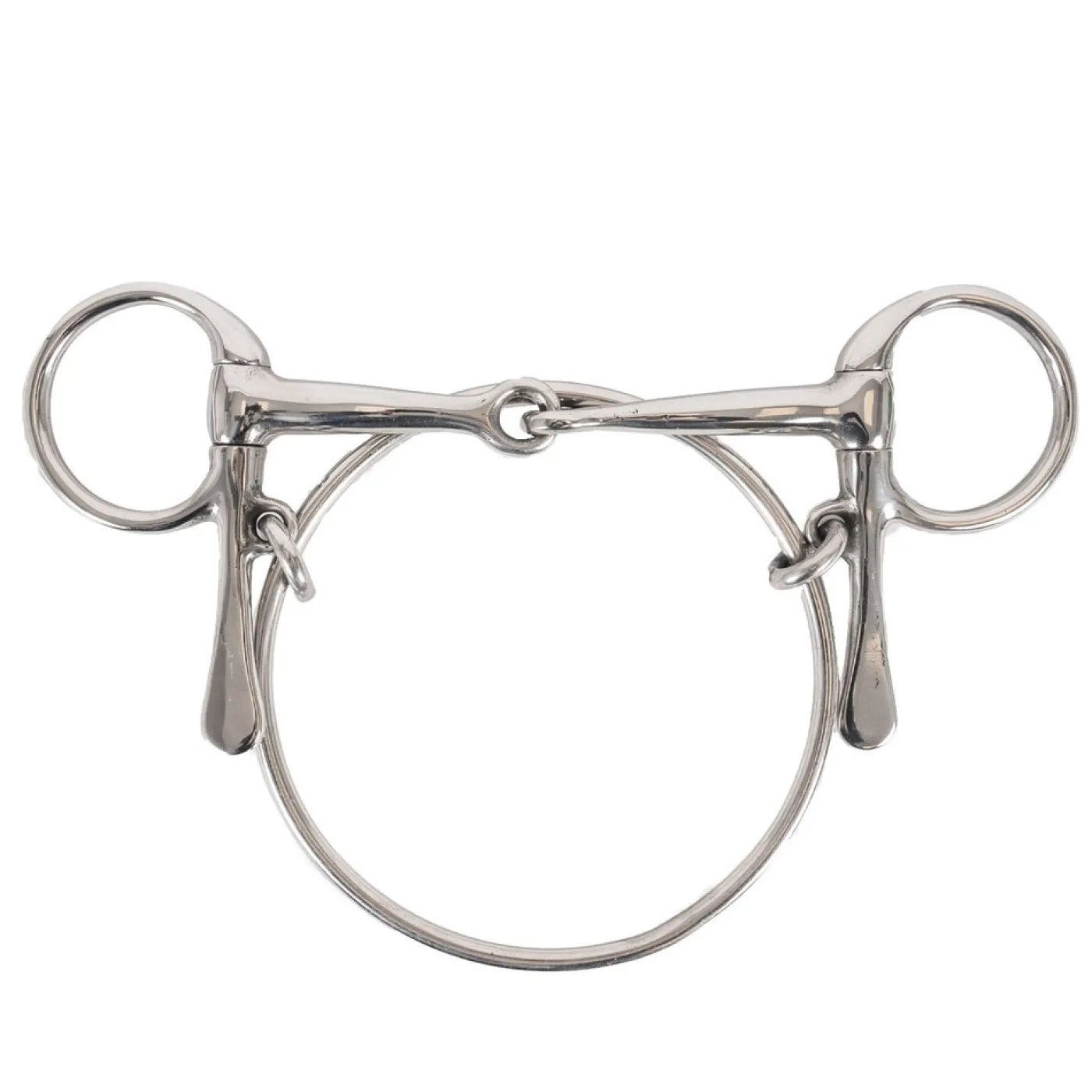 The Metalab Dexter Ring Bit is a combination of a chifney with a snaffle bit that is most often used with racehorses. The Dexter Ring Bit helps to provide added steering and stopping to strong horses with the action of the snaffle with the ring adding leverage on the horse’s mouth.