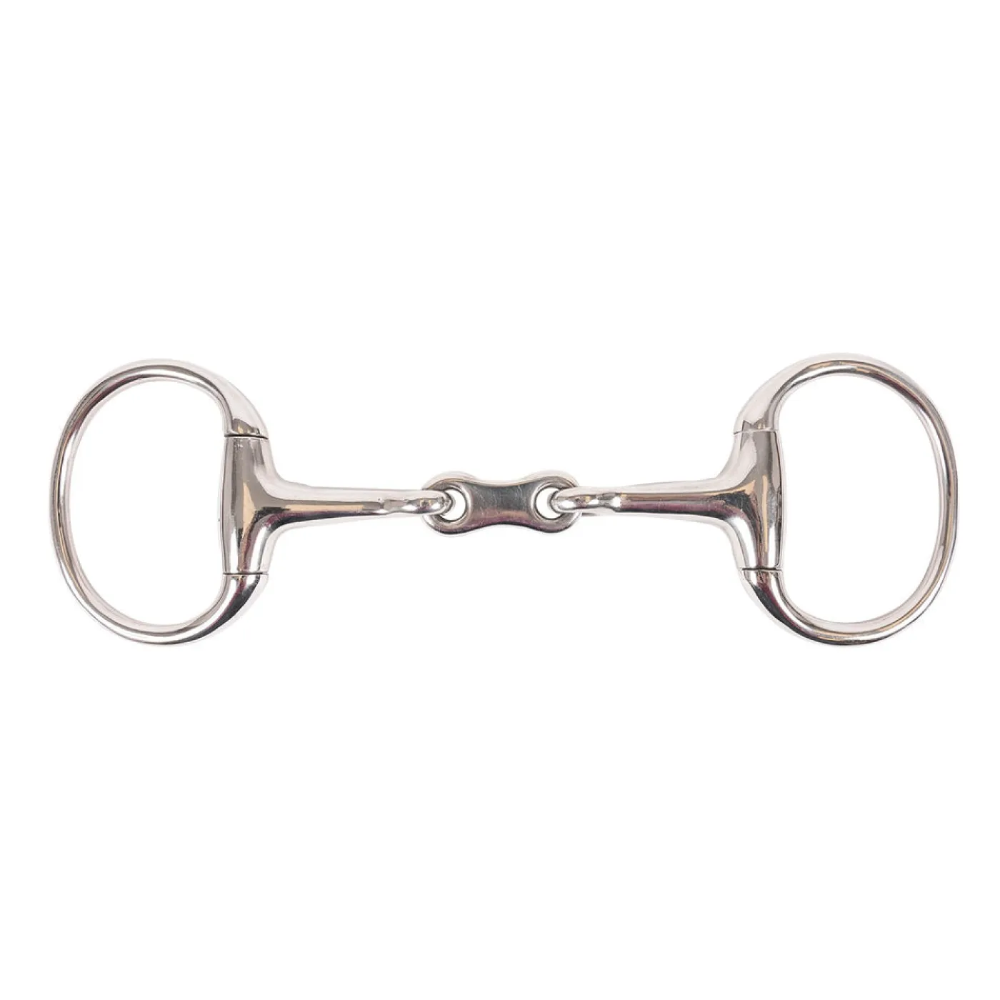 The EvoEq Eggbutt Snaffle Bit is slightly oval in shape and more mobile than other rings, and features a snaffle mouthpiece with a French link. The snaffle mouthpiece applies pressure to either side of the horse’s mouth as a cue for movement and the addition of the French link joins the two halves of the bit together and applies mild pressure to the horse’s tongue when required. Eggbutt bits are often used in dressage, hunters, or on young horses.