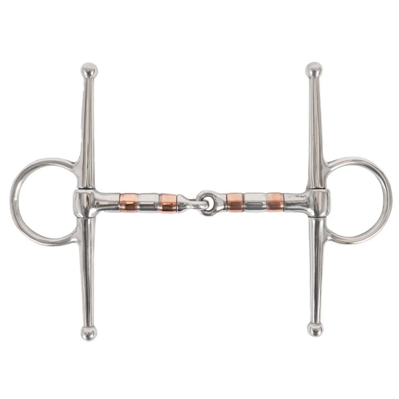 Full cheek snaffle bit featuring alternating copper and stainless steel rollers to help encourage play and salivation. Copper helps offer a warm sweet taste for the horse for enhanced comfort. Complete with full cheeks to help prevent the bit from being pulled through the mouth. Suitable for multiple disciplines.