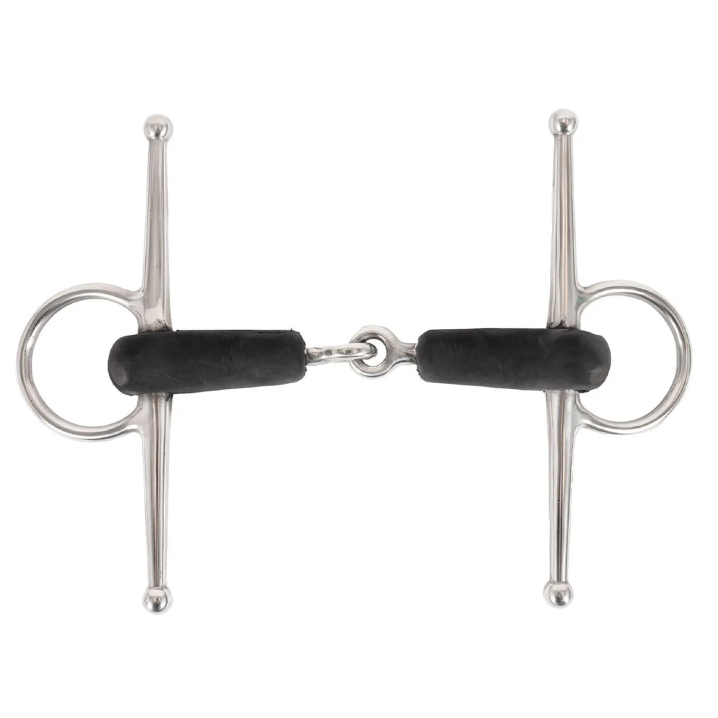 Crafted in soft rubber for optimal comfort, the Metalab Full Cheek Rubber Snaffle Bit helps to prevent the bit from being pulled sideways. The lightweight snaffle mouthpiece helps to offer gentle, mild pressure on the bars of the mouth. Complete with a stainless steel core and cheekpieces for optimal durability.