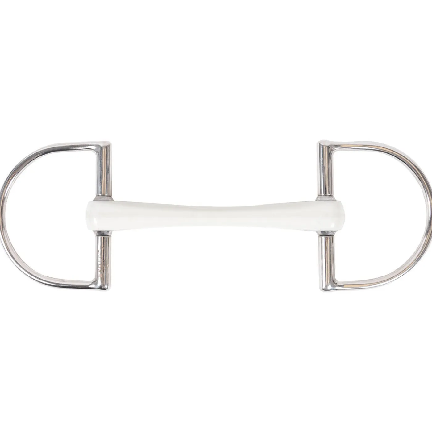 The EvoEq Hunter Dee Flexi Mullen Bit combines dee cheeks with a mullen mouthpiece. The flexible polyurethane mouthpiece is tapered to provide mild tongue relief. Stainless steel fixed cheek dee rings provide mild steering support. Mouthpiece measures 18 mm thick at sides and 12 mm thick at center. Dee rings measure 80 mm in diameter.