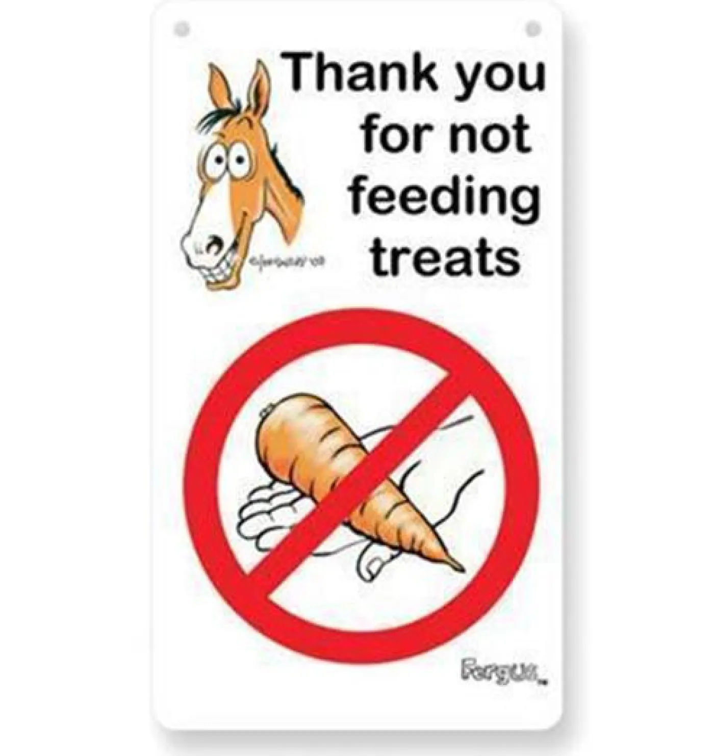 Remind everyone that your horse can’t have any treats with this functional sign. Easily attaches to stalls for prominent placement. 3 1/4″/8 cm x 11″/28 cm.