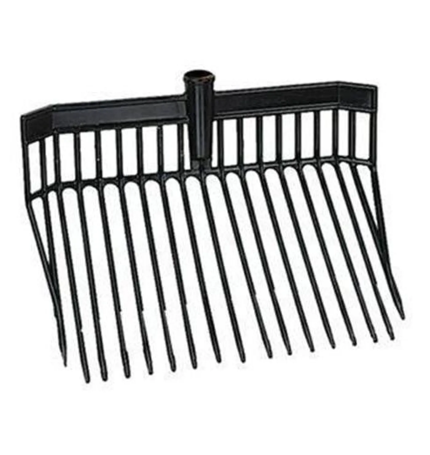 The Fortiflex Bedding Fork Bottom Tines are made with heavy duty polycarbonate construction. This lightweight, durable pitchfork head is designed for long-lasting use around the farm, ranch or home. This one piece, reinforced polycarbonate ABS head has 17 tines that are 10″ in length, and secures to the fork handle with a heavy-duty screw and self-locking nut with nylon washer. The specially designed tines are uniquely angled to provide easy manure pick-up with less spilling. Ideal for stable cleaning, bedding and manure removal.