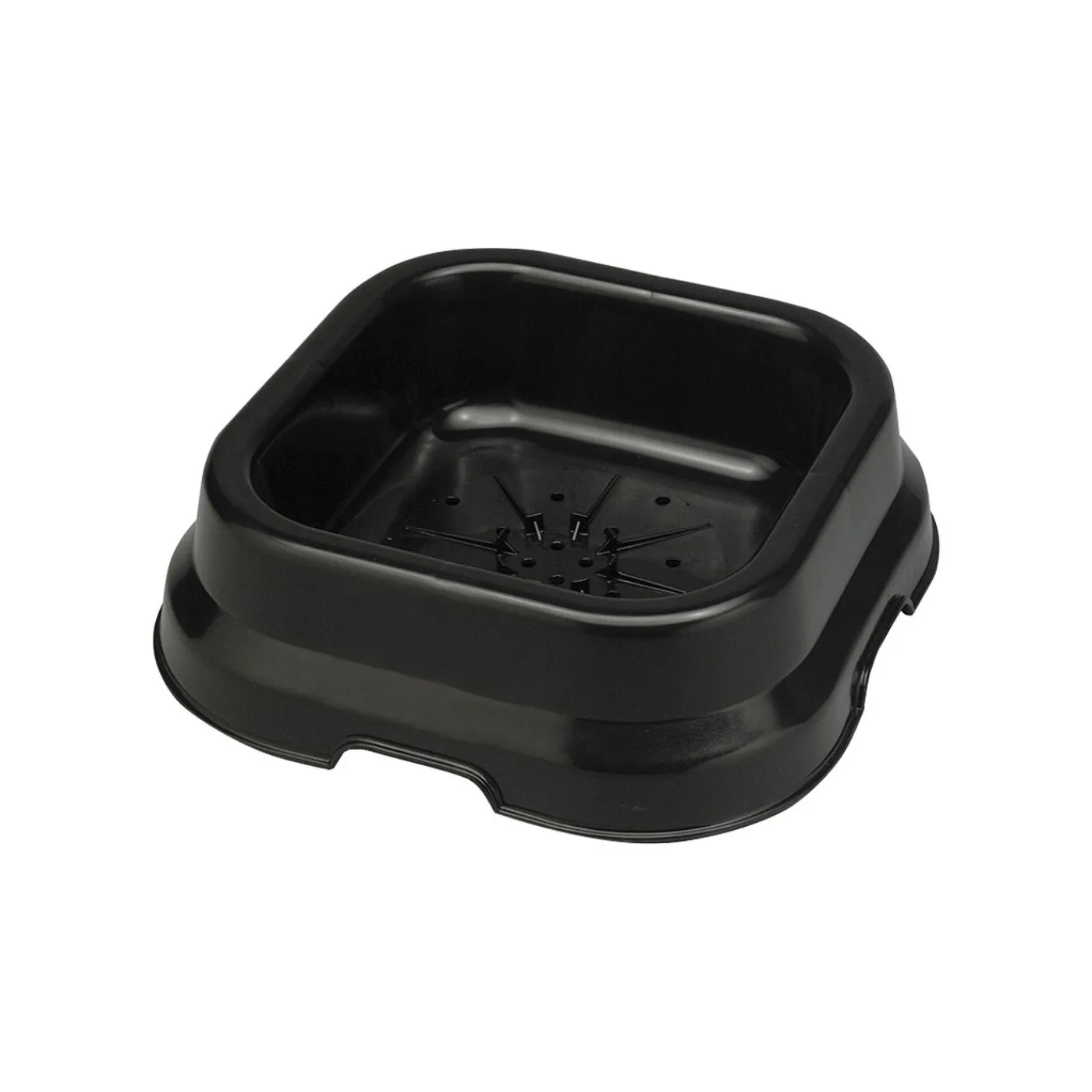 Unique and effective design to hold and protect mineral salt block for maximum durability. Radial ribs support salt block above bottom of pan to allow water to flow easily underneath.
