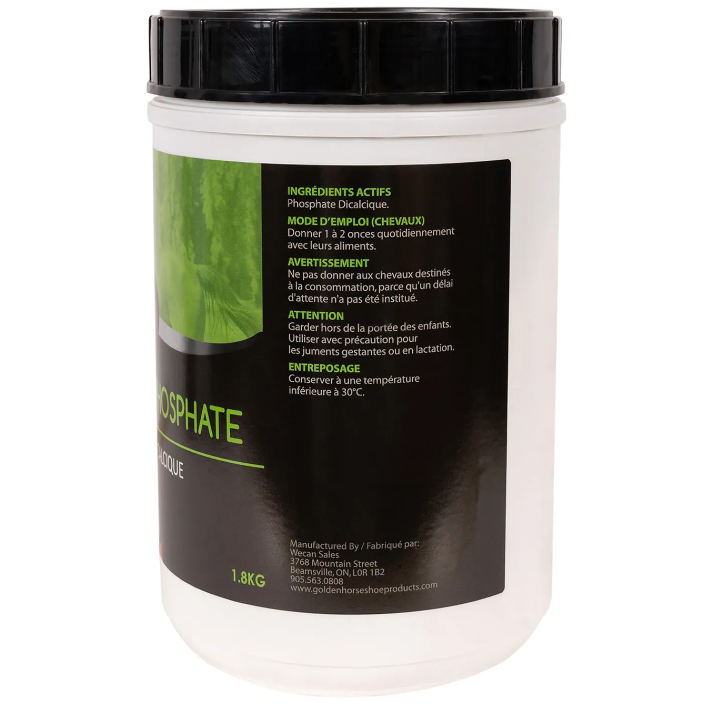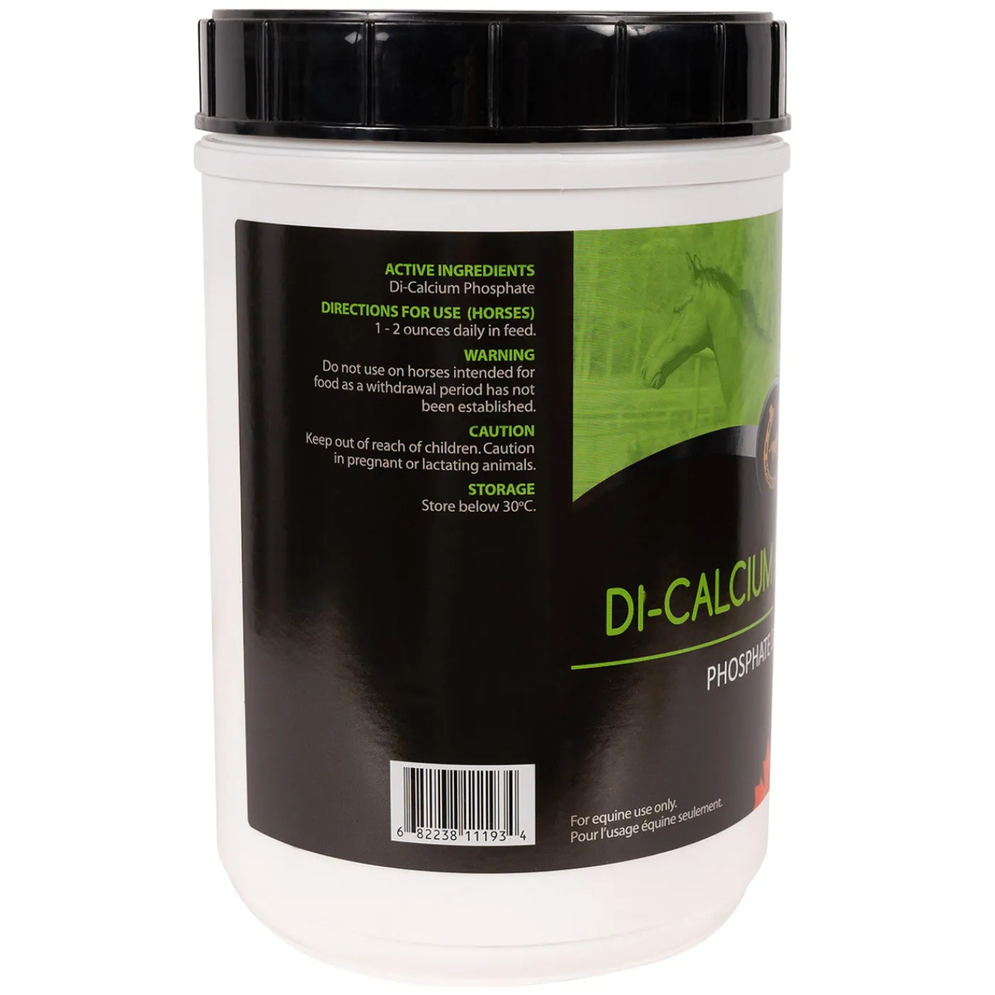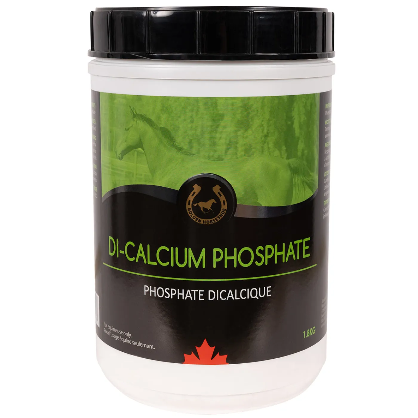 Golden Horseshoe Di-Calcium Phosphate contains a balanced ratio of Calcium to Phosphorous of 1:1. 30 g of Di-Calcium Phosphate provides approximately 7 g of calcium and 6 g of phosphorous.