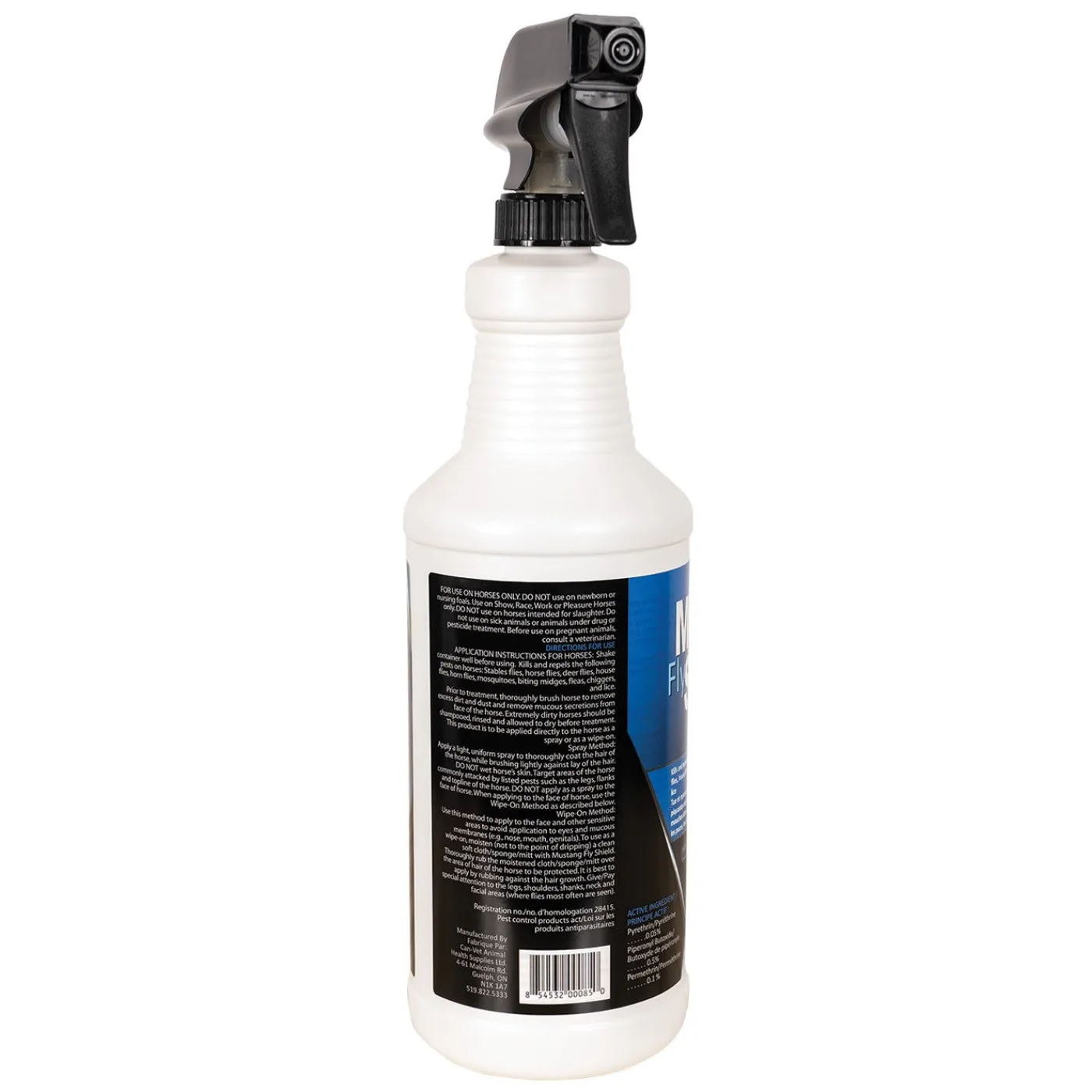 A water based, ready to use fly spray that can be wiped onto intricate areas or sprayed on for complete coverage. This broad spectrum fly spray contains citronella fragrance. Kills and repels stable flies, horse flies, deer flies, house flies, horn flies, mosquitoes, biting midges, fleas, chiggers, and lice.