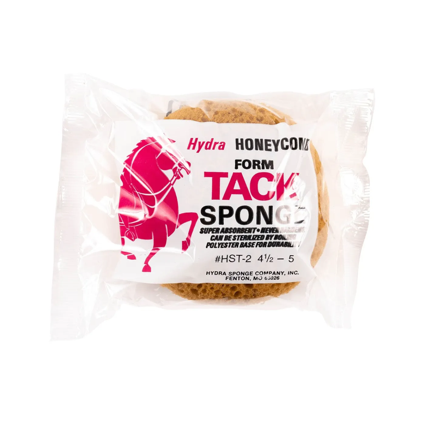 The Hydra Tack Sponge has a unique, super absorbent honeycomb design. This sponge is perfect for cleaning tack, equipment, faces and other small areas on your horse. This high quality sponge will not harden over time. Can be sterilized by boiling. Made from a polyester base. Measures 4″/10 cm in diameter. Made in the USA.