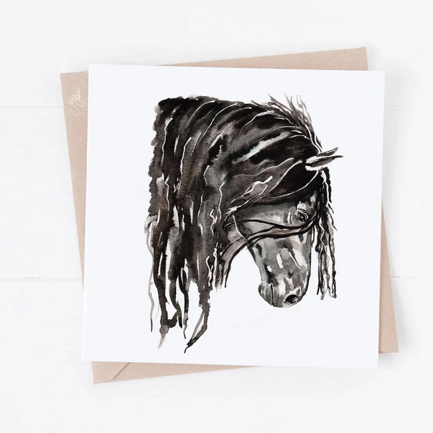 Horse greeting card printed on high quality 300 gsm stock with a matte water colour finish. Blank inside for a personal message.