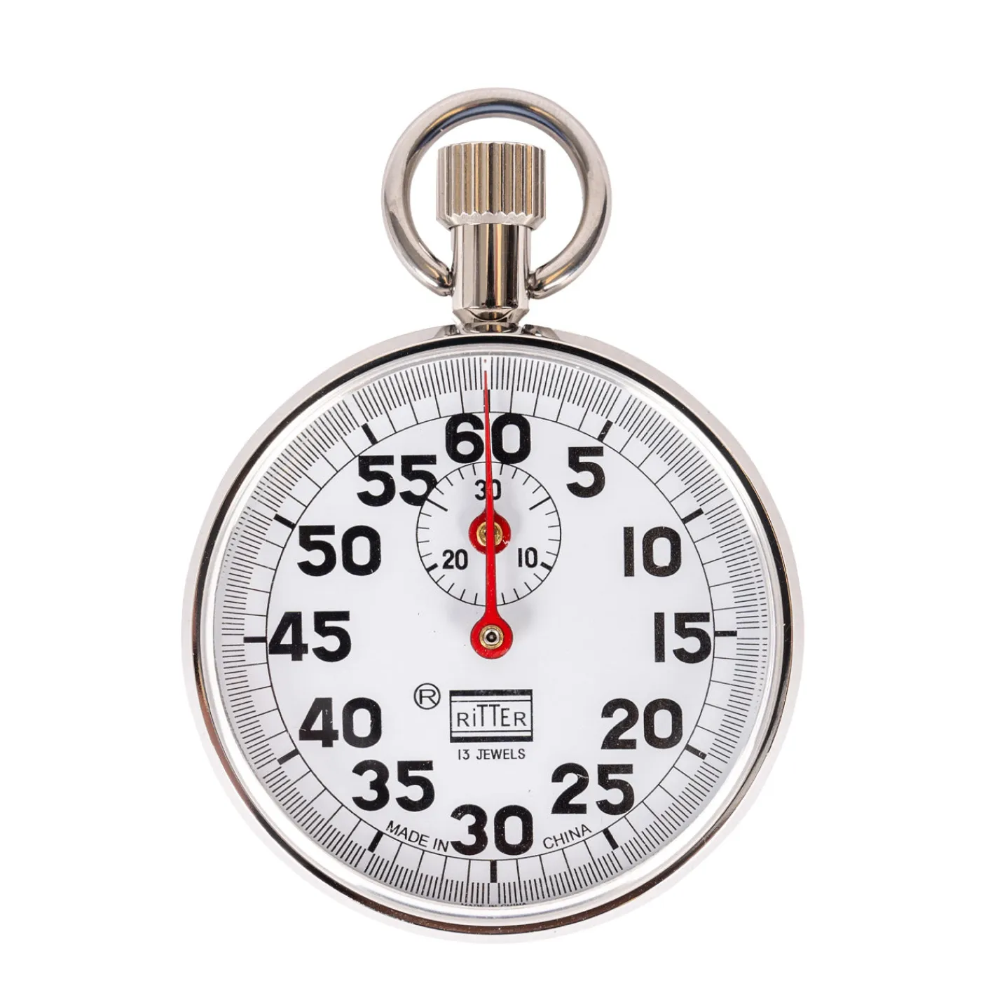 The Ritter Stopwatch is perfect for all of your training needs. Single timer with easy-to-read numbers, 60-second sweep, has 13-jewel and shock resistant. The outer rim features black numerals on a white background and times in 100ths of a minute Perfect for use at the racetrack.