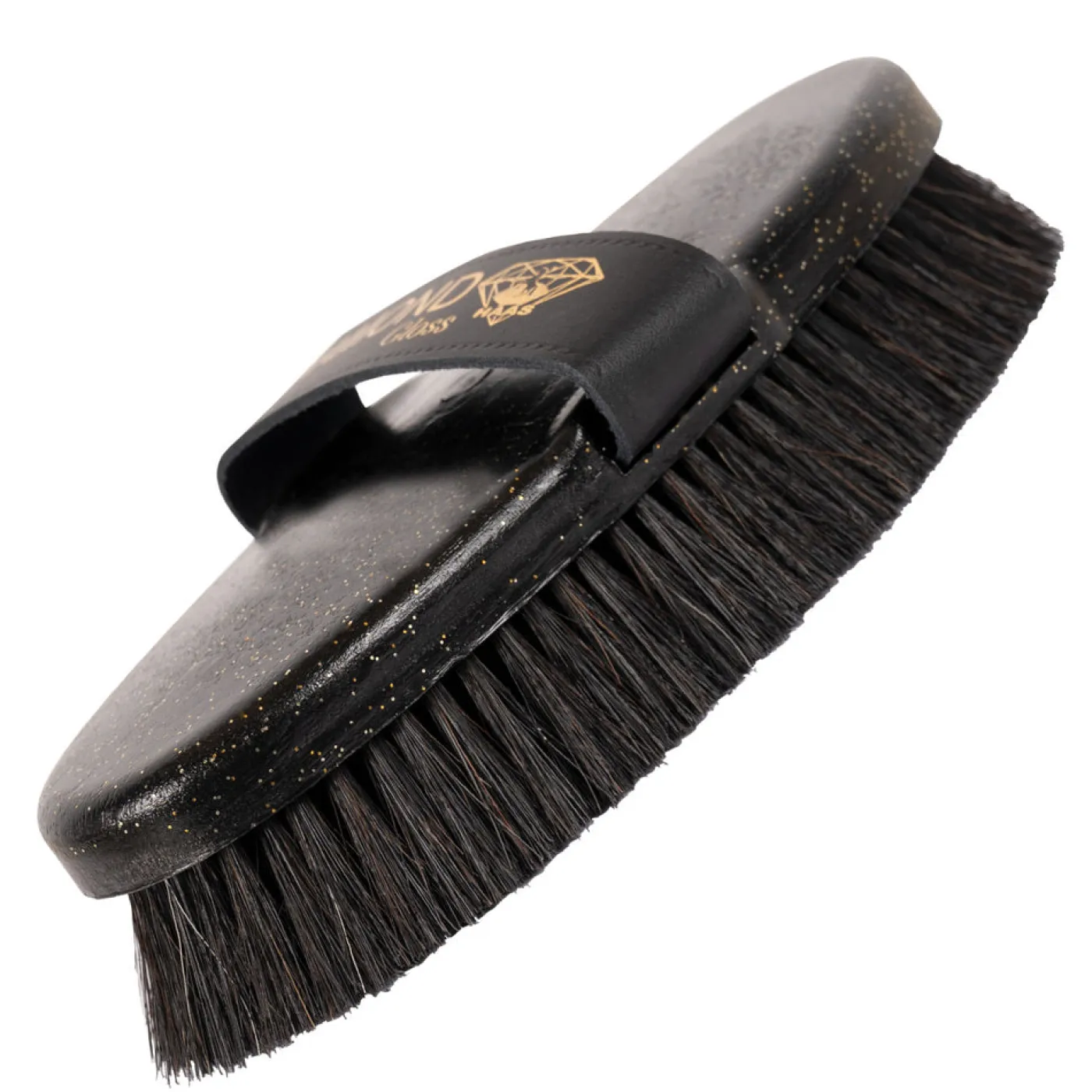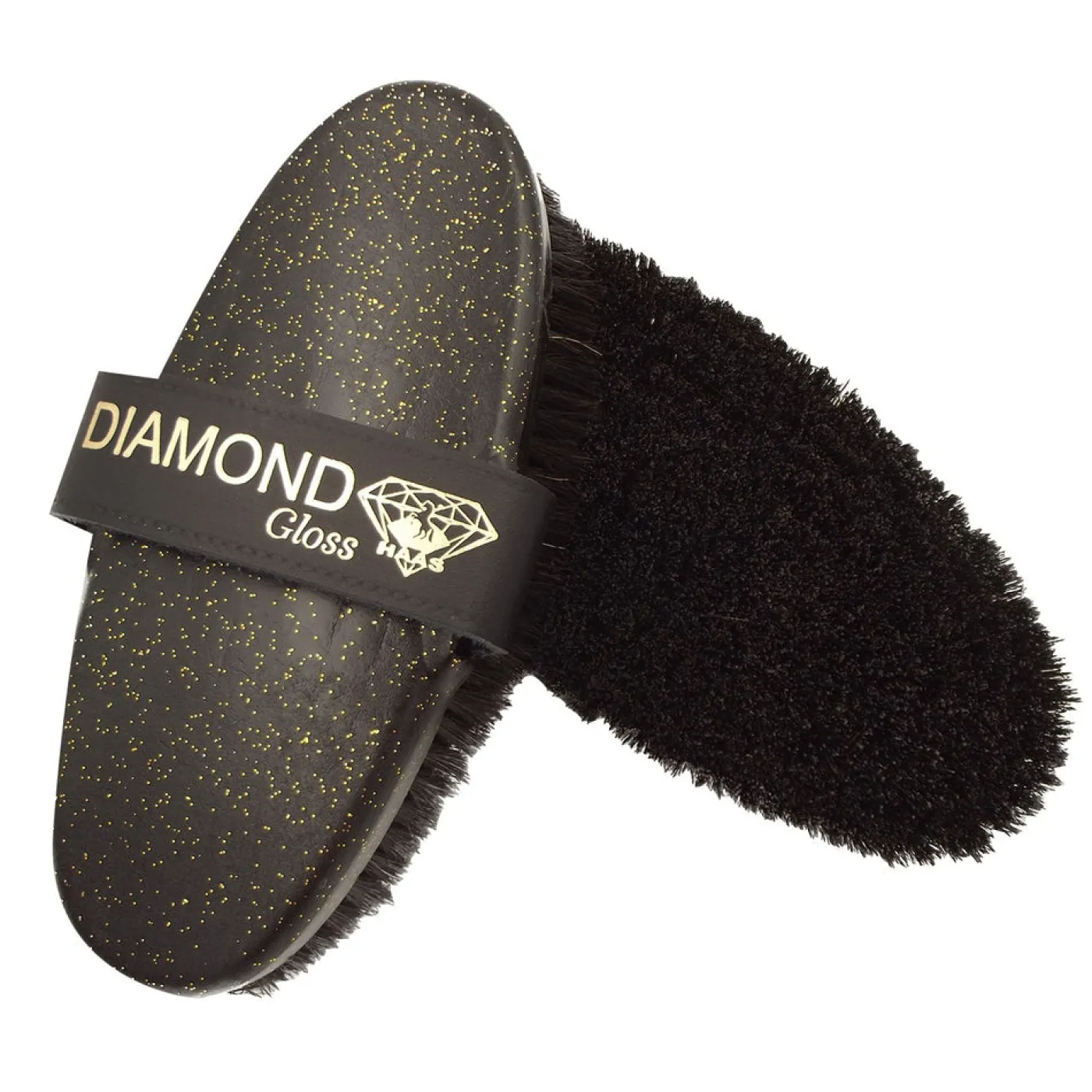 The Haas Diamond Gloss Brush offers an elegant design made from dense, soft and natural horse hair bristles. Complete with a leather wrist strap and glitter body design.
