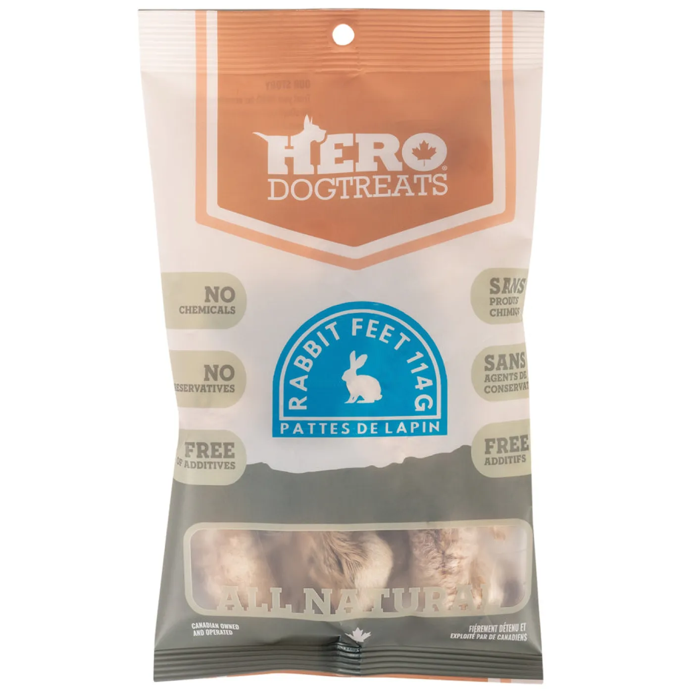Hero Dog Treats Dehydrated Rabbit Feet are a worry-free treat that is rich in flavour and packed with 100% natural protein. Made with 100% Canadian rabbit feet and are filled with fiber for easy digestion. Suitable as a daily treat or reward for your pup. Hero Dog Treats supports the Canadian Service Dogs Foundation, employs military veterans, and contracts community living personnel.