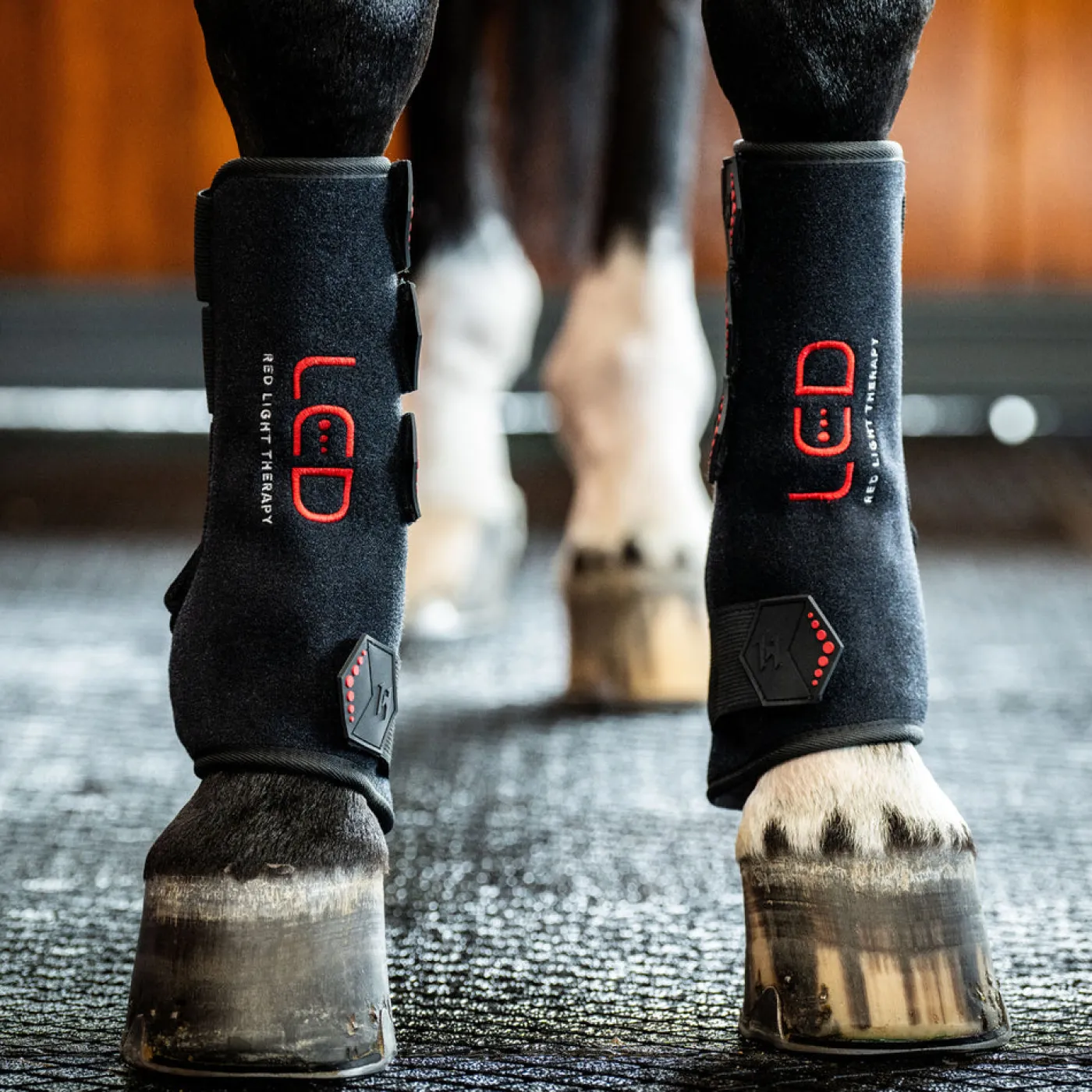 The Horseware LED Red Light Therapy Leg Wrap offers advanced technology designed to support soft tissue health and post-exercise recovery. 110 LEDs use a combination of different light wavelengths to target both the dermal layer and deep tissues. 660 nm red light targets the surface, while 850 nm infrared light penetrates deeper to reach soft tissues. Flexible, sturdy neoprene outer. Built-in battery with USB charging port for easy, cord-free use. 4 elasticated Velcro straps for adjustability and secure fit. Features 15 minute timer and pulse function.