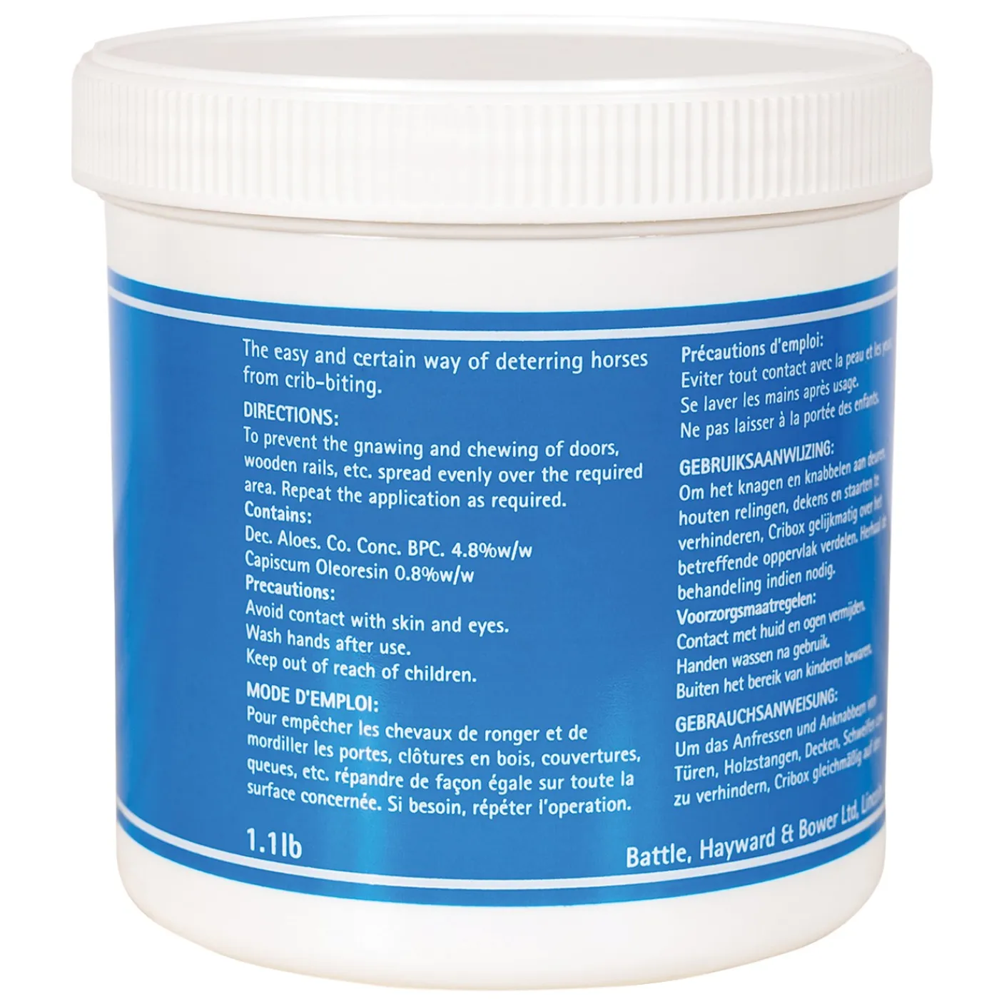 This famous English ointment helps put a stop to cribbing, gnawing and other no-no’s through an easy to apply ointment that doesn’t leave a mess! Simply apply the ointment to the areas that you horse cribs, and aid in the reduction of cribbing.