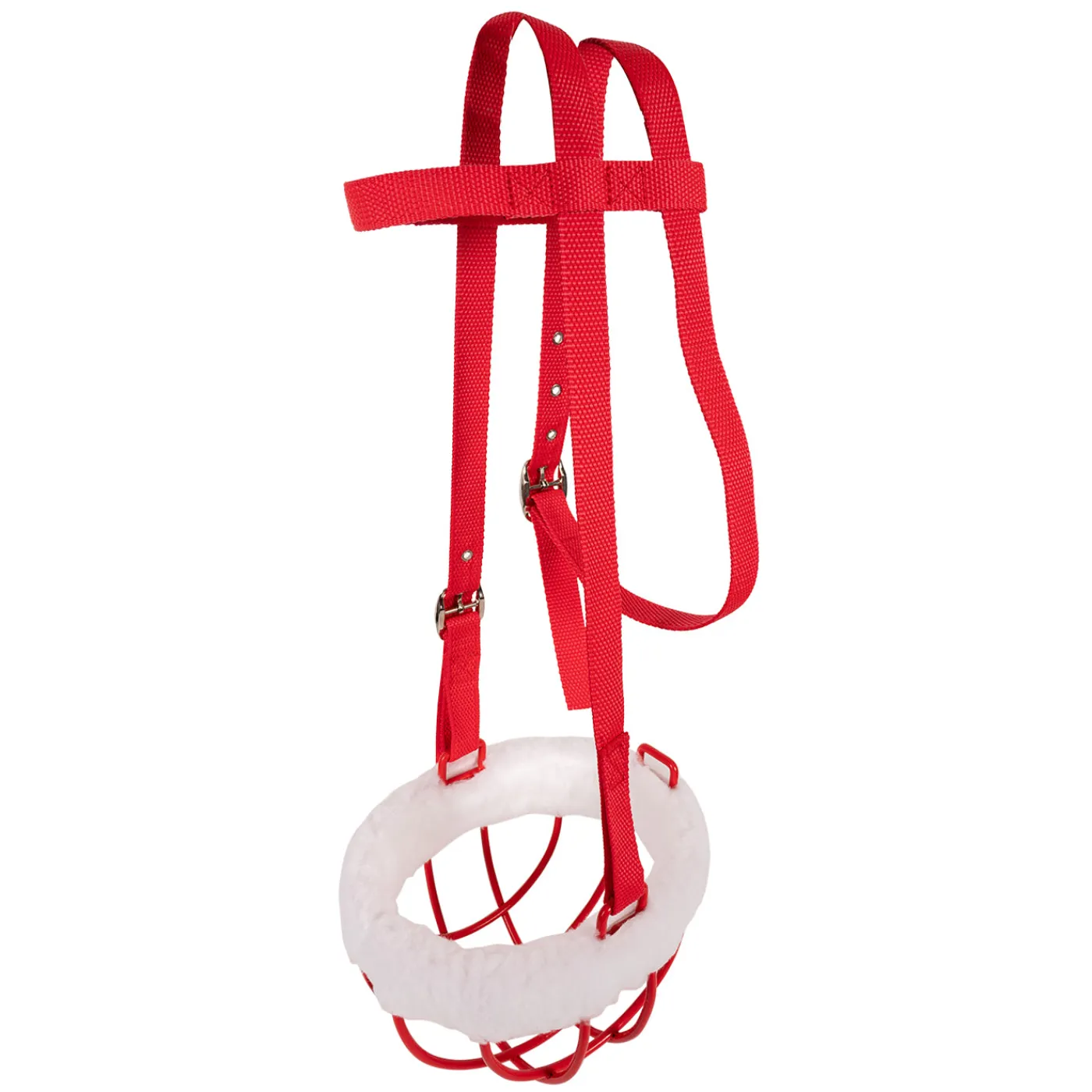 While this muzzle enables the horse to eat and drink, it prevents chewing on fencing and cribbing. Complete with adjustable headstall attachment.
