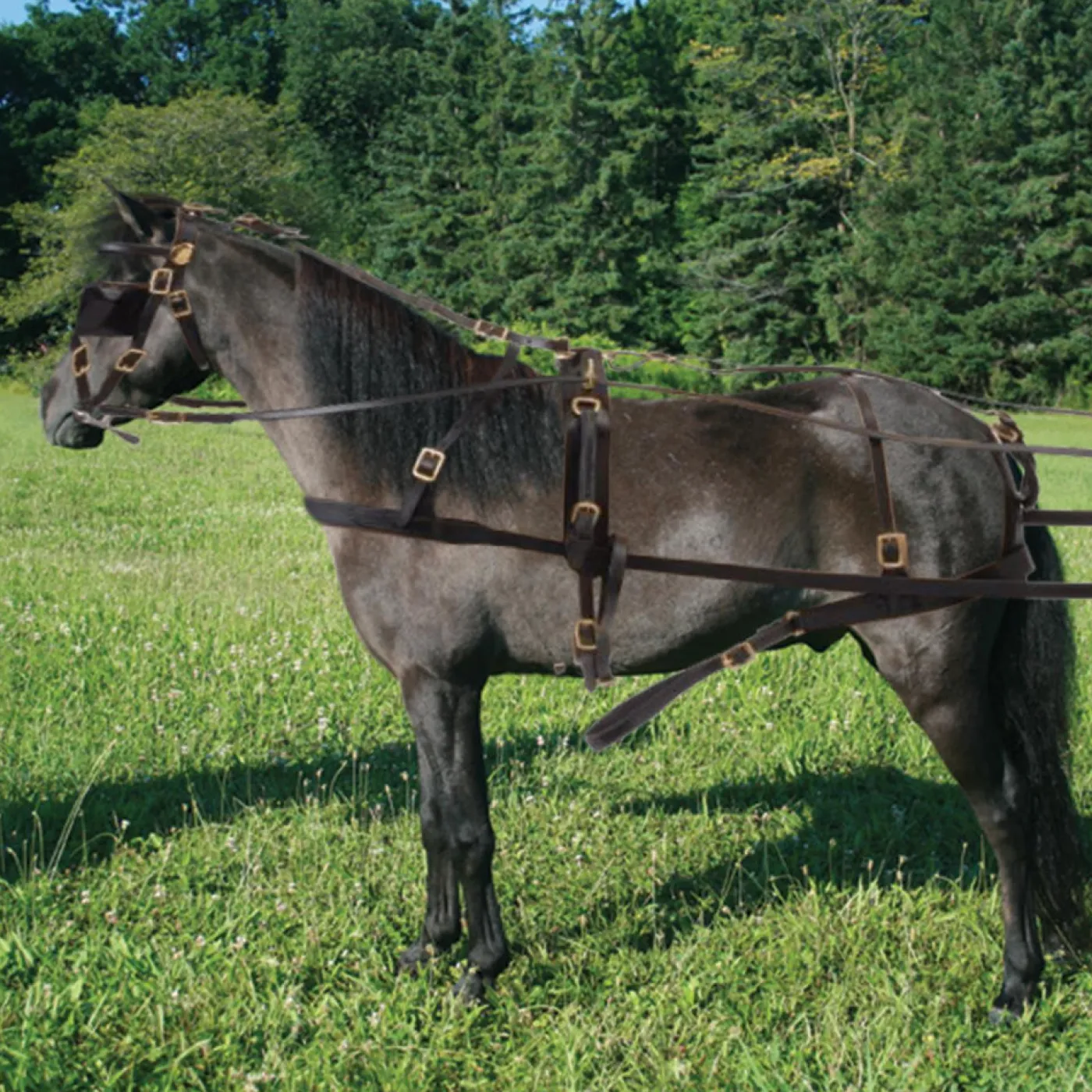 Suitable for showing or schooling, the Leather Miniature Driving Harness is crafted from premium quality black leather. Designed for the Miniature Horse, the harness is adjustable for an optimal fit. Complete with durable brass trimmings, this attractive driving set is sure to turn heads in the show ring. Brown driving lines included. Due to the size and weight of this item, an additional shipping fee applies.