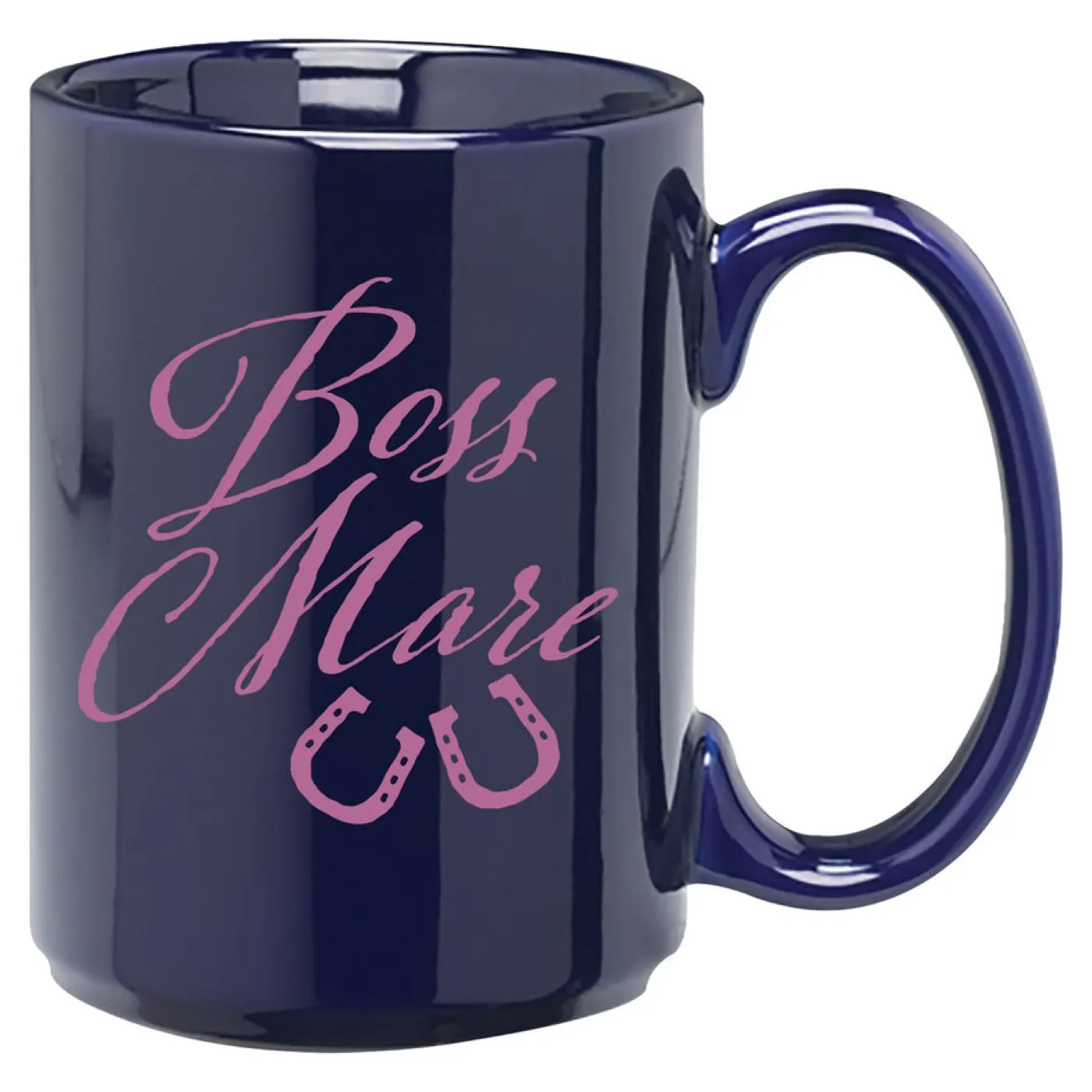 Wake up in charge of your day with this Boss Mare mug! Large ceramic mug. These fun mugs will keep horses on your mind all day long! A great gift for a fellow horse lover as well! 15 oz.