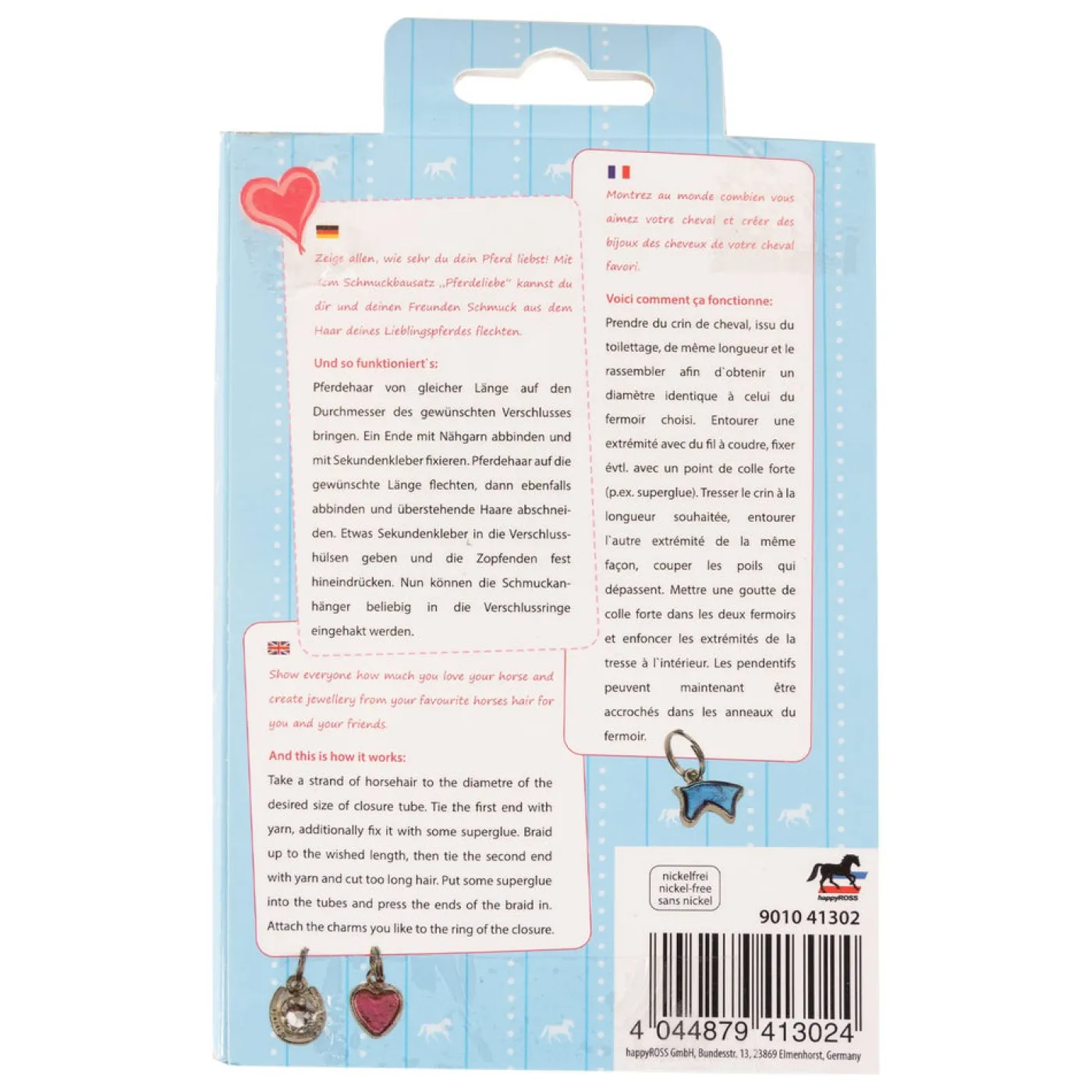 Make precious memories with this do-it-yourself horse hair jewelry kit. Kit includes five charms and two clasps for you to easily make a keepsake necklace, bracelet, and keychain charm with horse tail or mane hair.