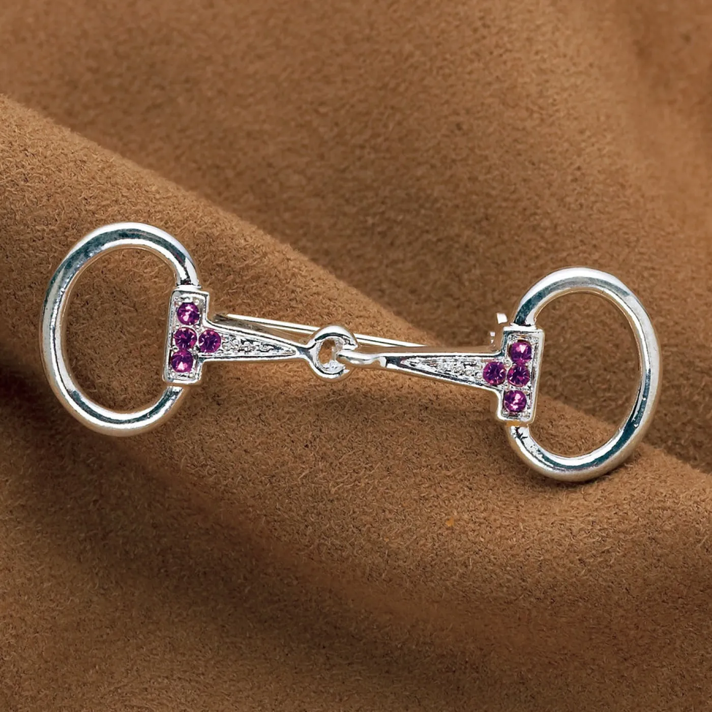 Add a little personality to your traditional show attire with the Small Rhinestone Snaffle Bit Stock Pin. This stylish pin is the perfect addition to your stock tie or to your outfit away from the horse show. Shaped like a snaffle bit and featuring rhinestones for an extra pop of sparkle. Perfect for any equestrian looking to have a little fun with their style and show off their passion!