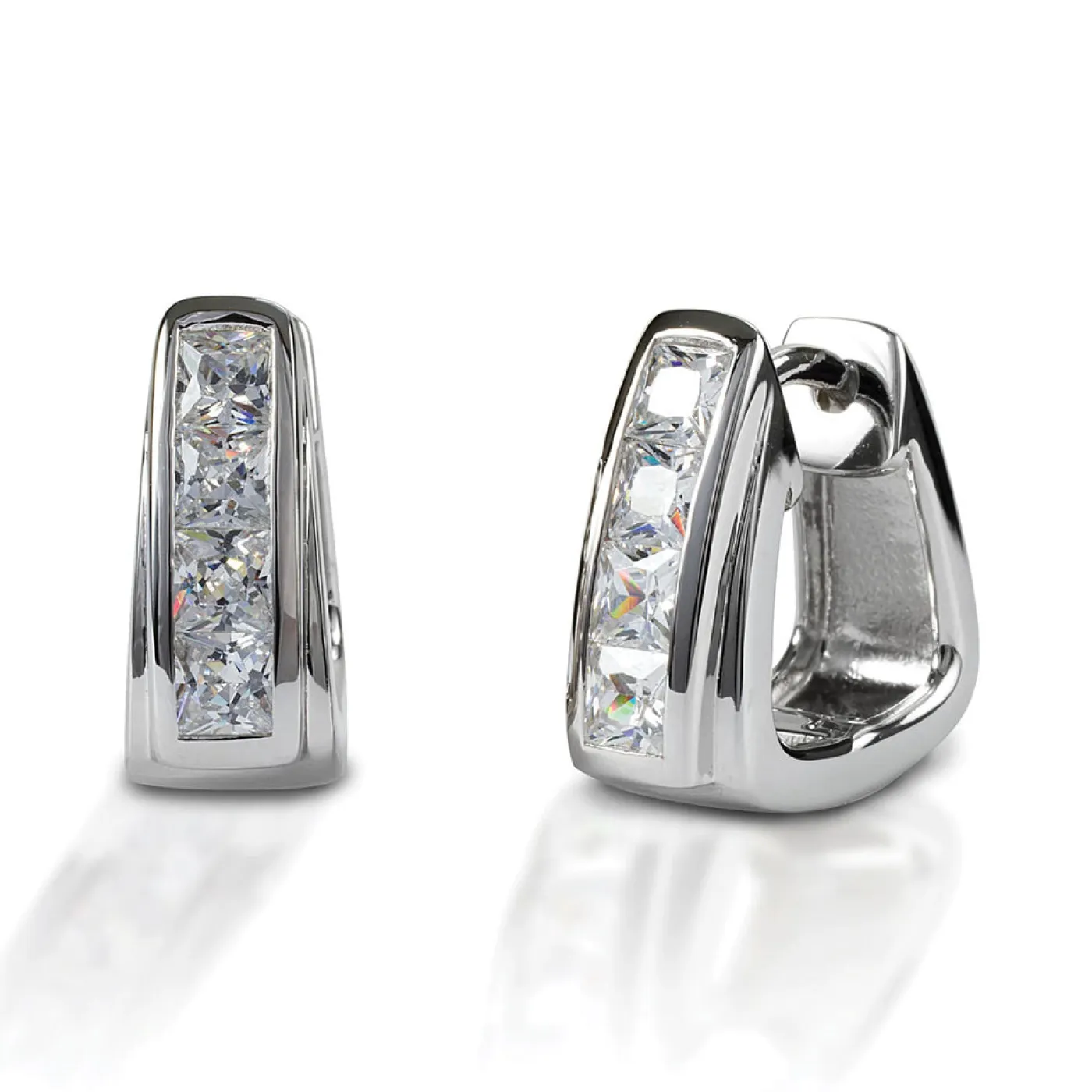 Designed with equestrians in mind! The Kelly Herd Contemporary Stirrup Hoop Earrings feature a stylized Western stirrup shape in a classic chunky hoop earring. Made in 0.925 sterling silver and enhanced with square cubic zirconia stones.