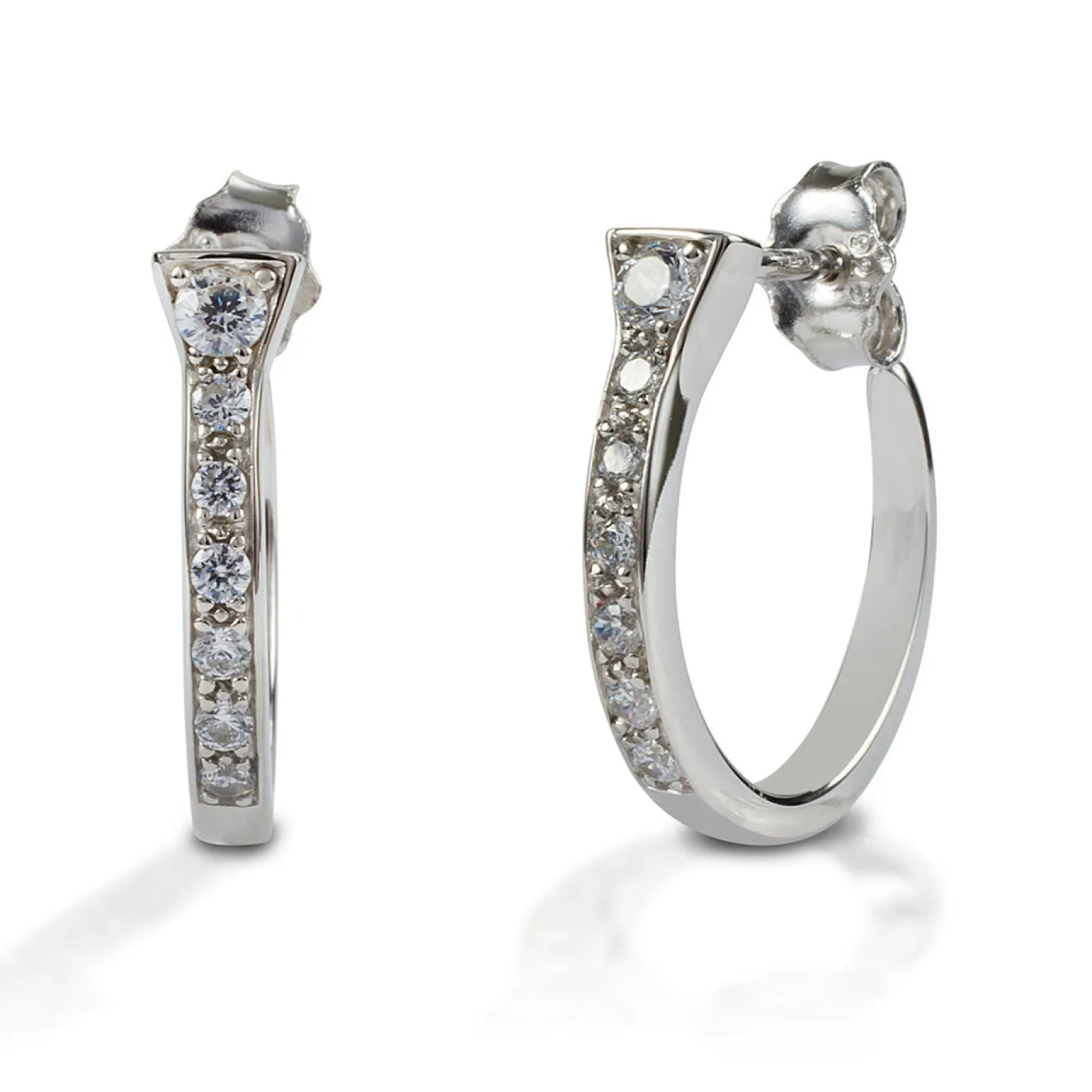 The Kelly Herd Horseshoe Nail Earrings offer a classic hoop earring style for the avid equestrian. Made of 0.925 sterling silver with horseshoe “nails” made of clear CZ. Complete with a post back.