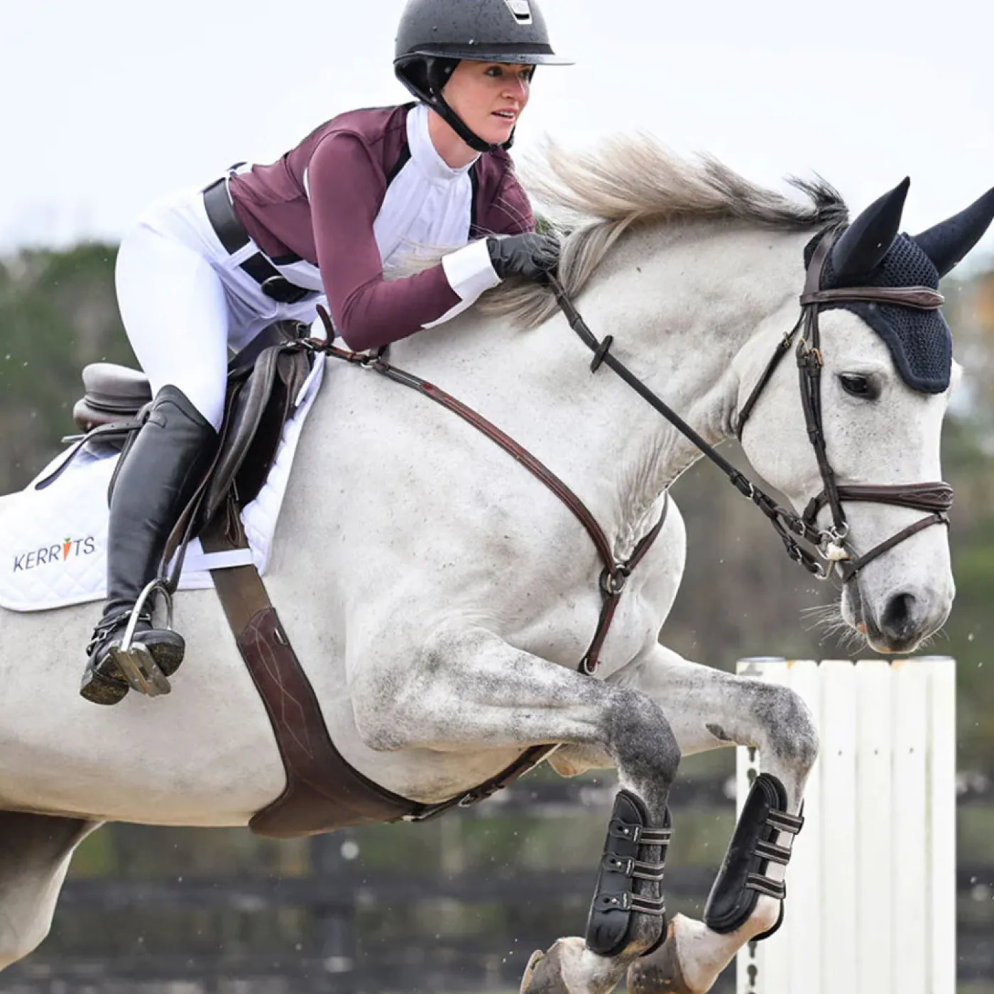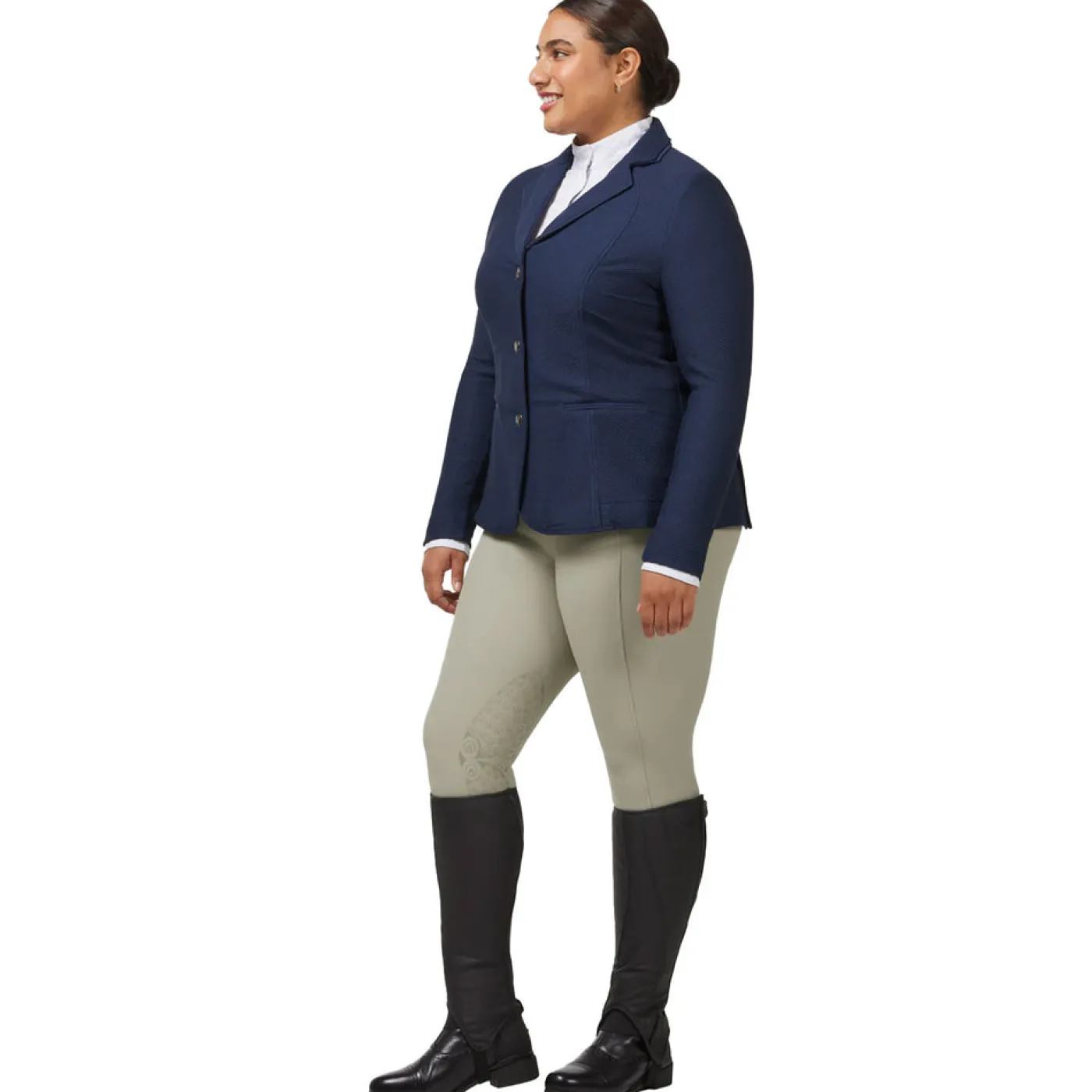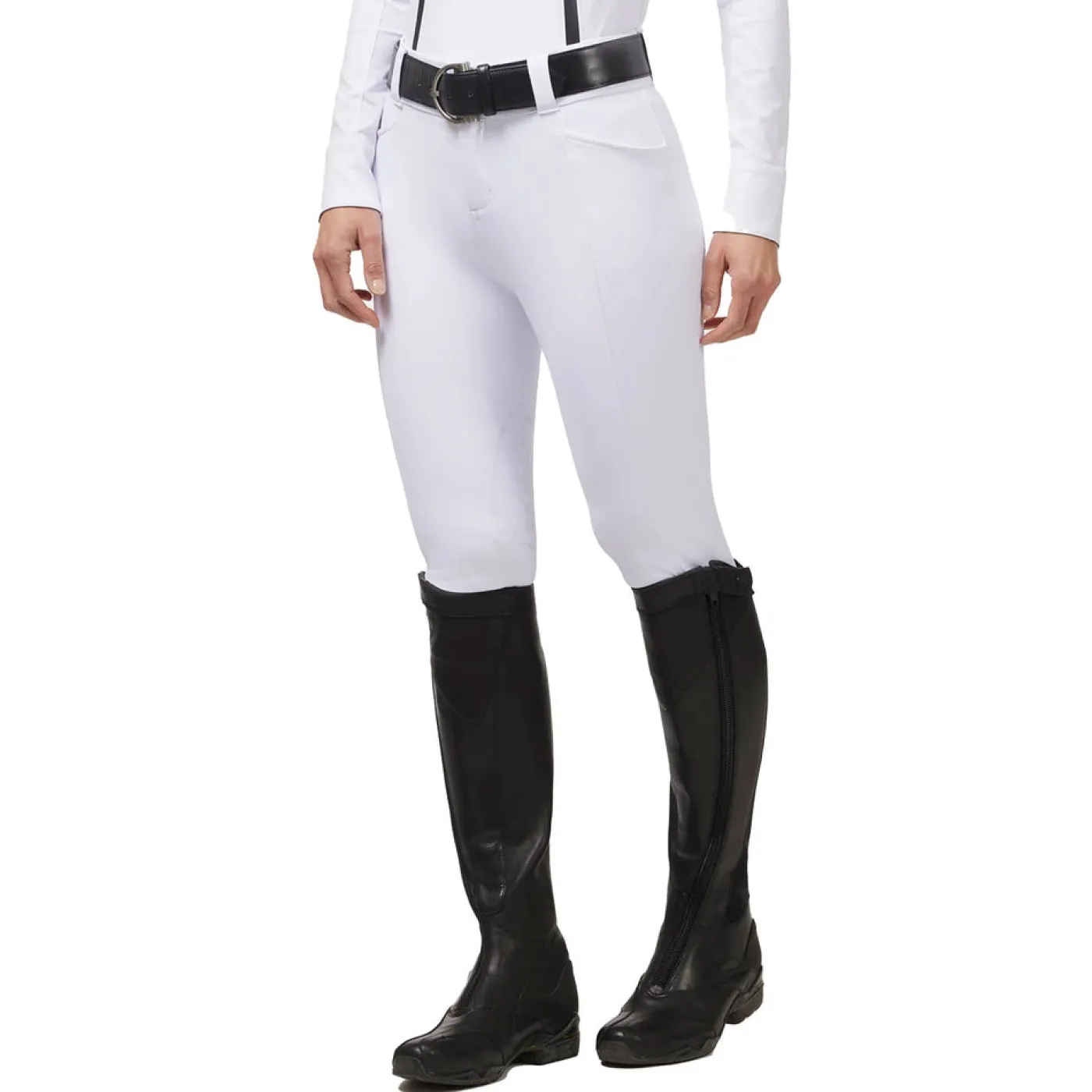 The Kerrits Affinity Pro Knee Patch Breeches are a high performance breech that bring classic styling to modern technology. Made from a moisture-wicking ProStretch™ twill fabric, these mid-rise breeches are breathable for your comfort while providing coverage to help you look as good as you feel. The Affinity breech is soft against the skin and will keep you cool throughout your training sessions or competitions. The knee patch grip uses Affinity® patterned silicone for just the right amount of traction. Additional features include a tailored front fly with a two-snap closure, a two-inch comfort waistband, and belt loops.
