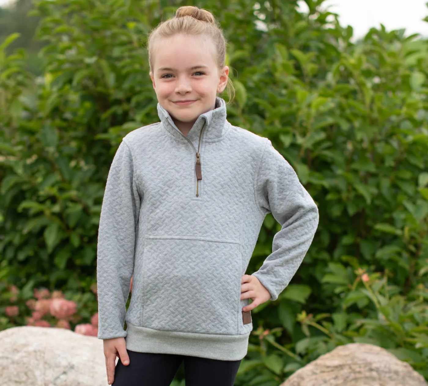 The Aerion Adelia Quarter Zip Quilt Sweatshirt is now available for kids! Exclusive to Greenhawk, this 1/4 zip top is soft, comfortable, and versatile. Great for pairing with breeches and features a quilted design with a front kangaroo pocket and faux leather zipper pull.