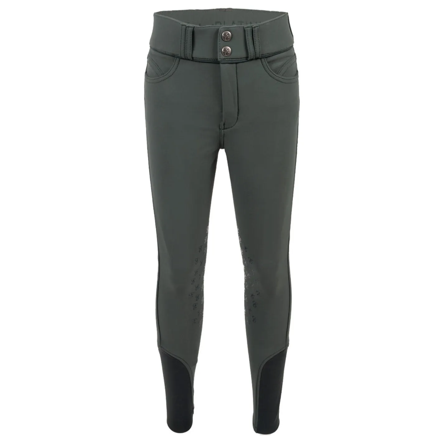 The Elation Platinum Brooklyn High Rise Breech offers fashion forward styling and a European cut in a lighter weight technical fabric with excellent 4-way stretch for everyday schooling or in the show ring. Premium silicone knee patches are combined with a slightly wider, two button Gutos closure waistband. Visually stunning, the Brooklyn is complete with Demi-cut Sport Stretch™ ankles for a smooth, snug fit, front and back pockets, double belt loops in a contrast stitch and front zipper.