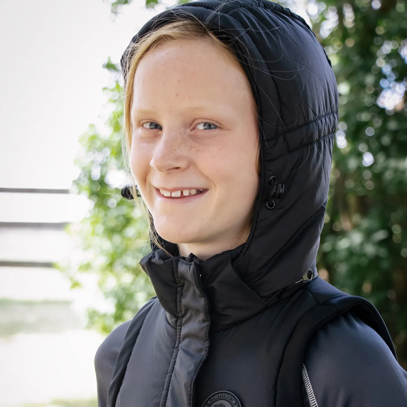 The TemTeq Frobisher Vest is perfect for all-season layering in or out of the saddle. Features a warm, quilted design, with a stand collar and detachable hood. Complete with softshell stretch side panels for exceptional fit and comfort, a full zip front, and zippered side pockets.