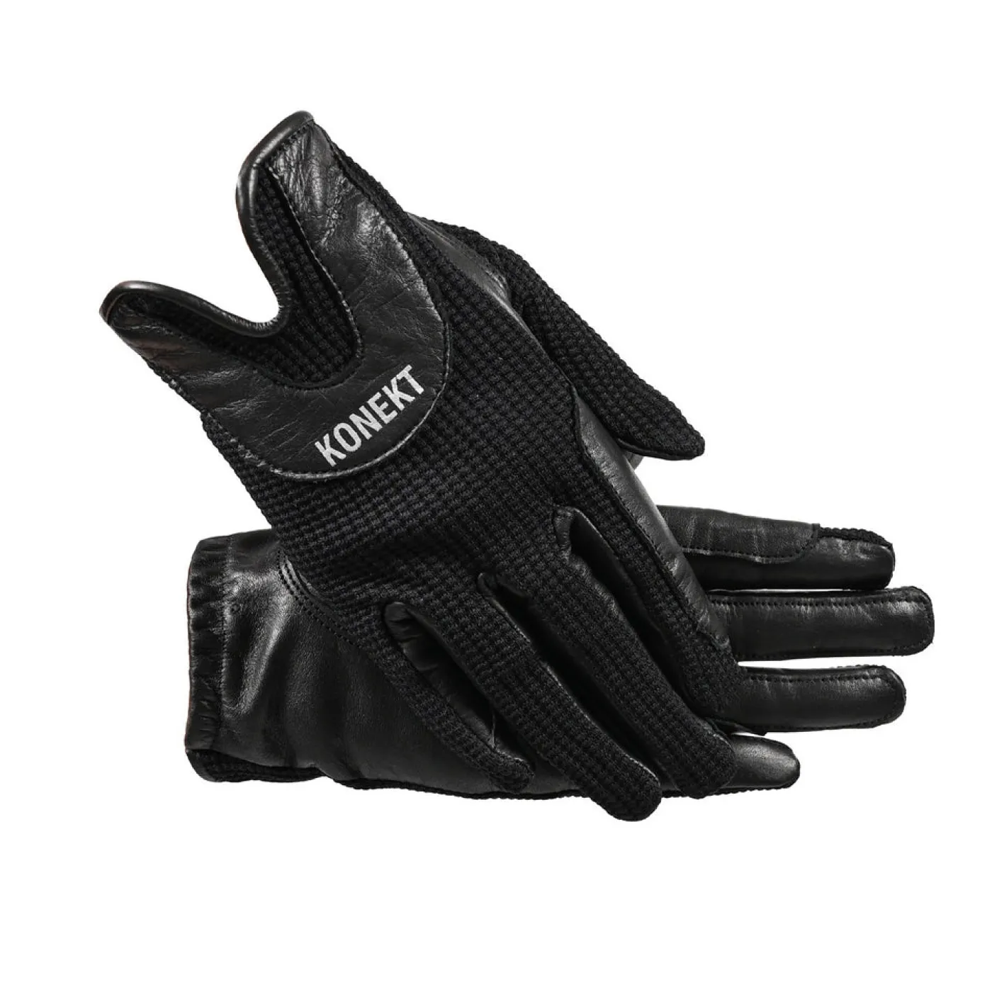 The Konekt Sizzle Summer Glove is perfect for staying cool on hot days! This glove is made with a lightweight leather and a crochet back for excellent breathability. Leather palms and inserts between the fingers allow for natural grip on the reins. The upper crochet weave encourages airflow to keep hands cool and dry. Finished with an elastic wrist for the perfect fit.