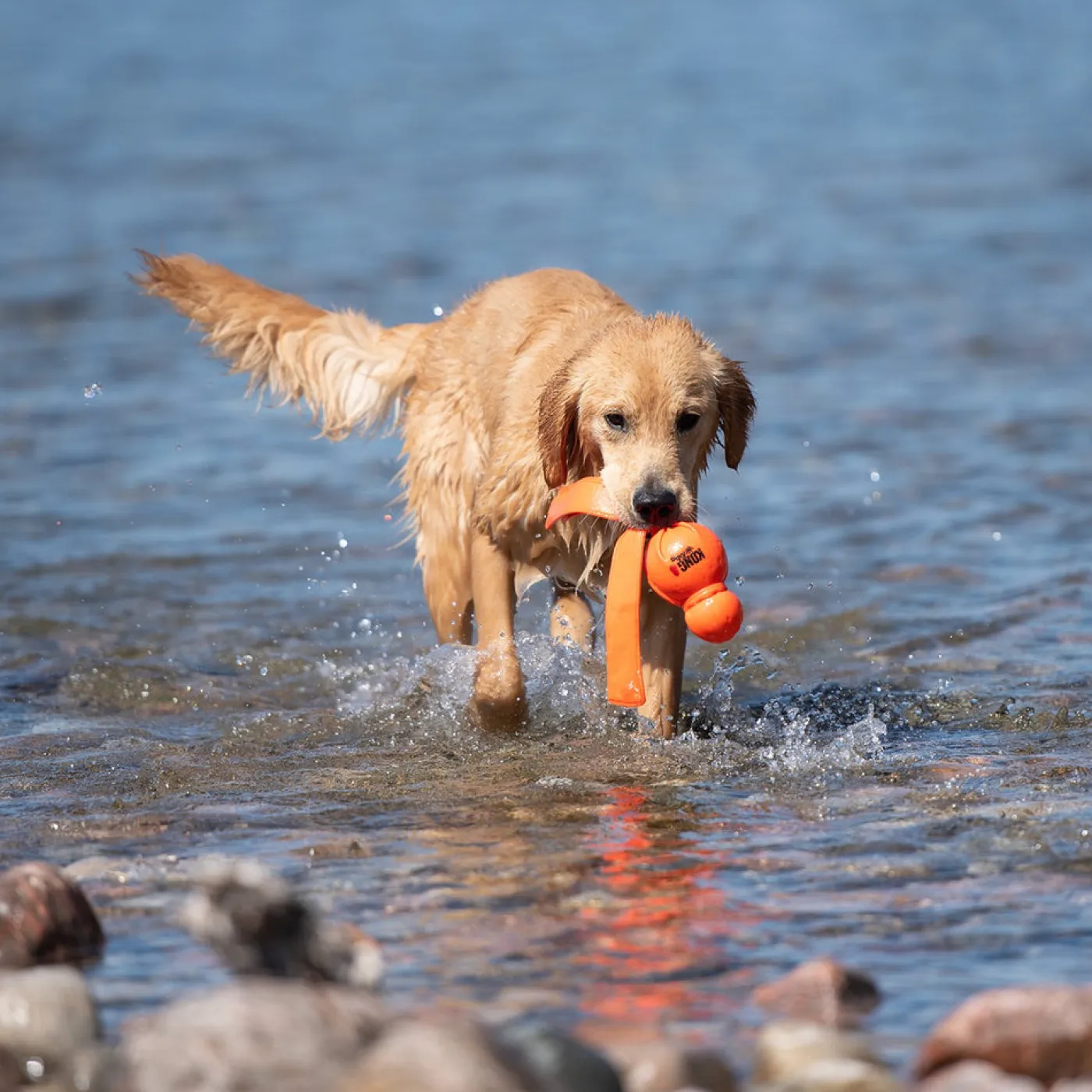 The Kong Water Wubba is a fun toy for your dog to play toss or tug with. Created with a neoprene outer layer, this toy floats on water and is quick to dry once play is over. Complete with a tennis ball inside the main toy and long tails for an easy pickup and toss. Great to play with in water or snow. Measures 14″L x 3.5″W. Ships in assorted colours.