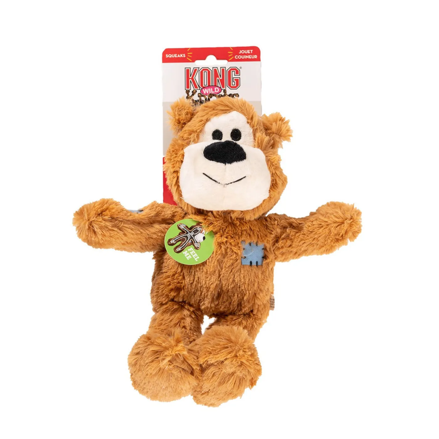 Kong Wild Knots are soft and cuddly on the outside, but durable and strong on the inside. Wild Knots Bears are sure to be a hit with dogs and their pet parents. Dogs love the knotted skeleton, and the reinforced plush body provides extra durability. Kong Wild Knots have less stuffing for less mess and they squeak to entice play. Ships in assorted colours.