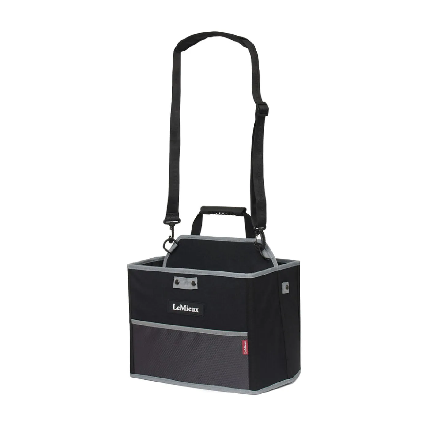 Ideal for travel or overflow storage, this pack-away storage tote provides additional space when needed. Easy to assemble, it pops together with strong press studs to create a large carry tote. Multiple sections and pockets will store all your equipment and grooming accessories, plus a grab handle and removable shoulder strap offer comfortable carrying options. The sturdy mesh base allows dust and dirt to escape and air to circulate, keeping things neat and clean. When you’re done, it packs flat for storage!