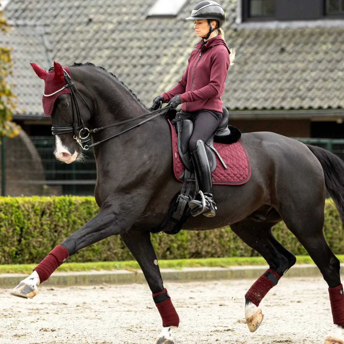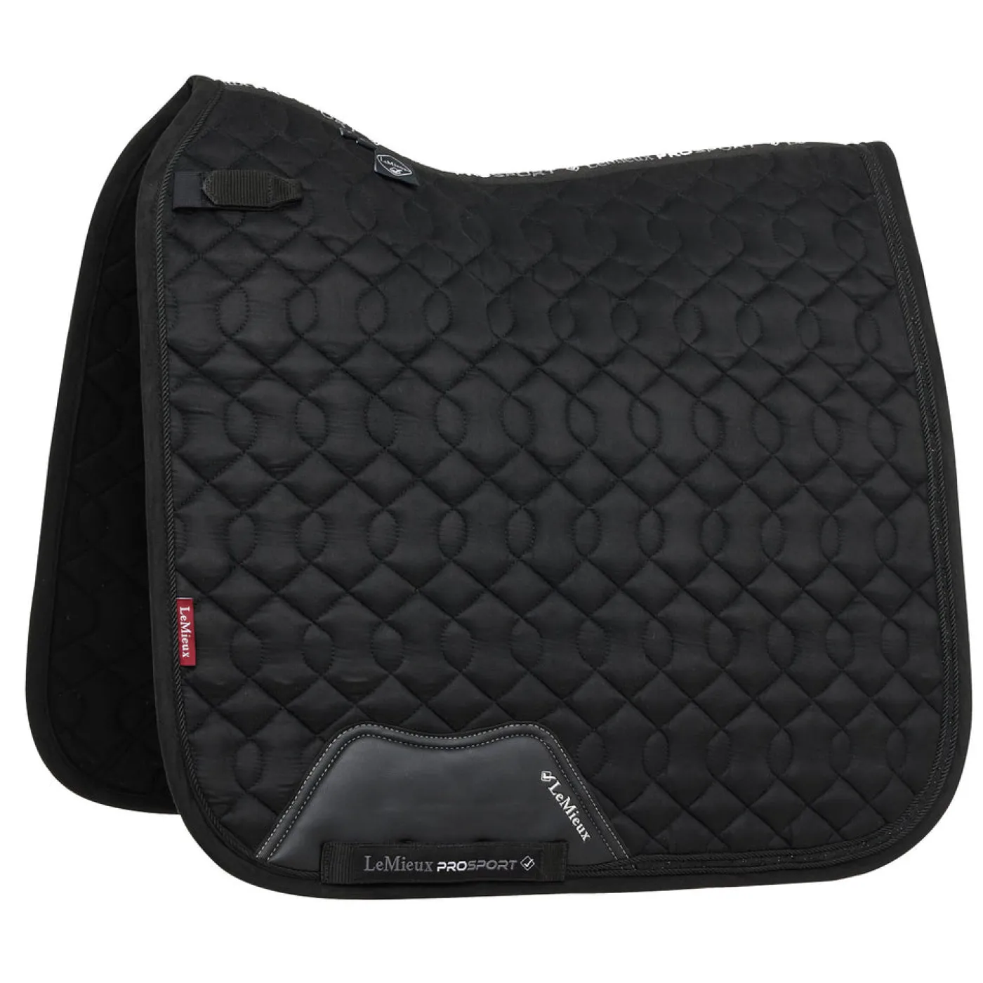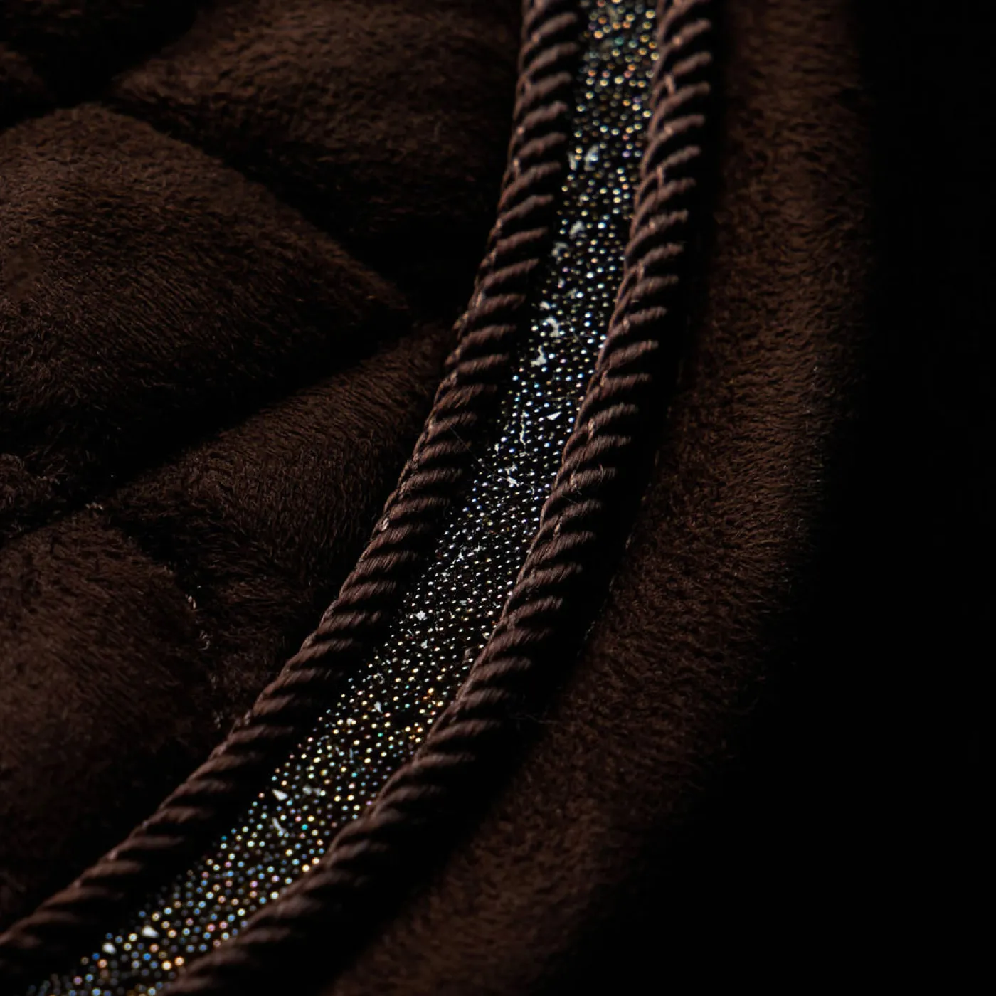 The LeMieux Crystal Suede Dressage Saddle Pad is designed for a secure fit under Dressage saddles and features a bamboo lining, durable faux leather girth protection area, and a sparkle and braided detail trim for added style. The bamboo lining is friction-free, and helps to quick sweat and moisture away from the horse’s skin. Complete with a high wither profile for added comfort.