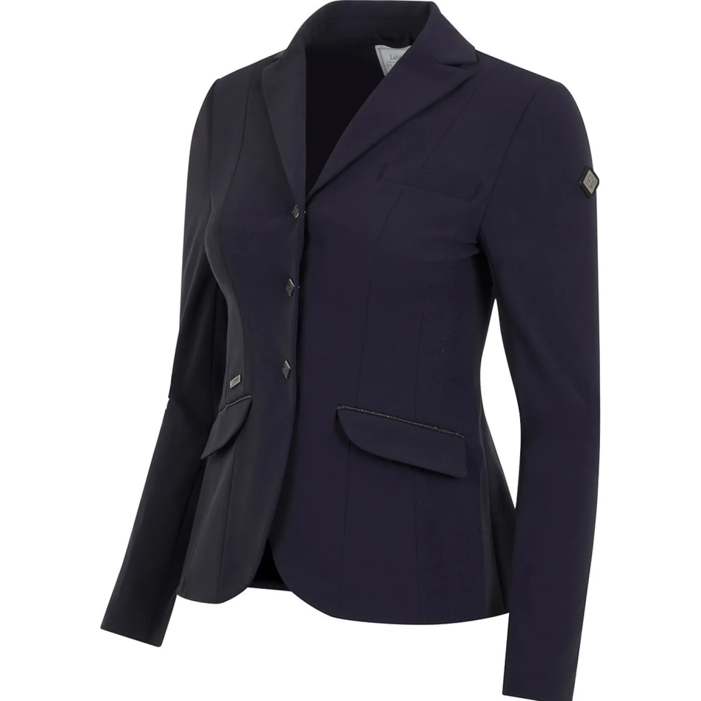 The stunning new Dynamique Show Jacket has been designed with your competition performance in mind. Vented side panels and sports mesh lining to the front provide the ultimate breathability, combined with superior stretch and recovery so that the rider is unrestricted and free to move. A subtle beaded trims on pocket edges and back belt panel add a touch of luxury sparkle and creates a flattering silhouette and stylish appearance. Fastened with a front zip and custom LeMieux press stud for stunning practicality, this Show Jacket is a must-have for all competition riders.