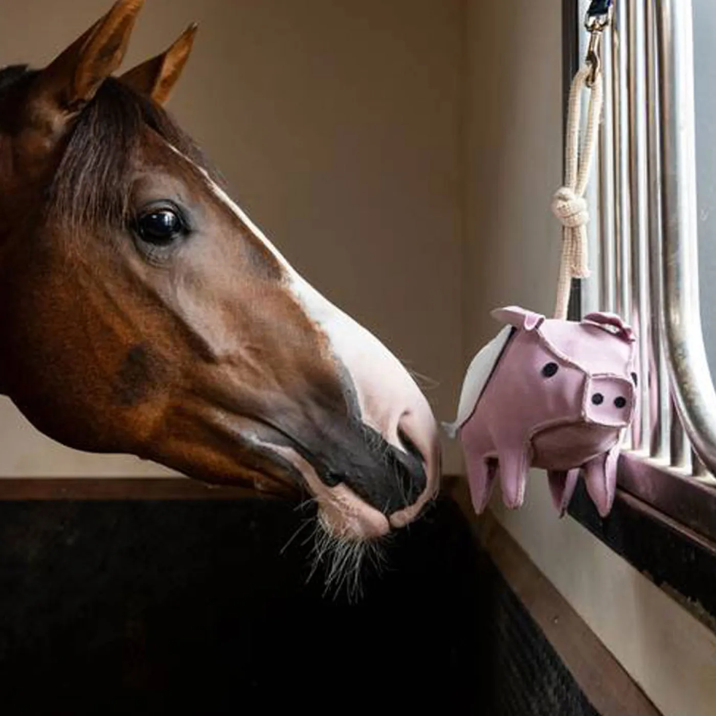 The LeMieux Flying Pig Horse Toy offers a colorful 3D boredom breaker for your horse. Crafted from durable suede with rope legs for all day play. Lined with hessian and filled with coconut husk for added strength.