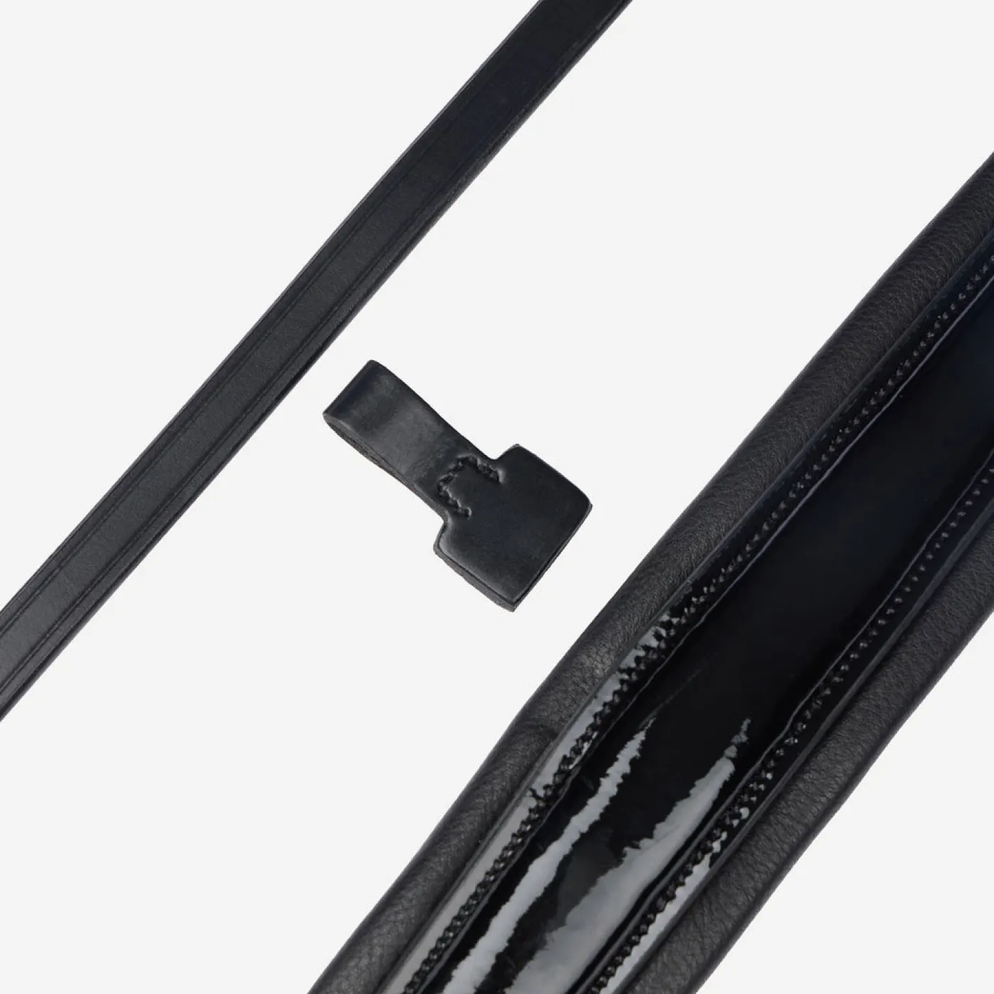 The LeMieux Kudos Patent Dressage Bridle offers a contemporary twist on a classic style. Features an anatomically shaped, delicate, and detachable clincher browband with crystal detailing and a padded crank noseband that offers roller buckles on the crank strap and flash. The throat latch fastens discretely under the jaw for a slimline appearance.