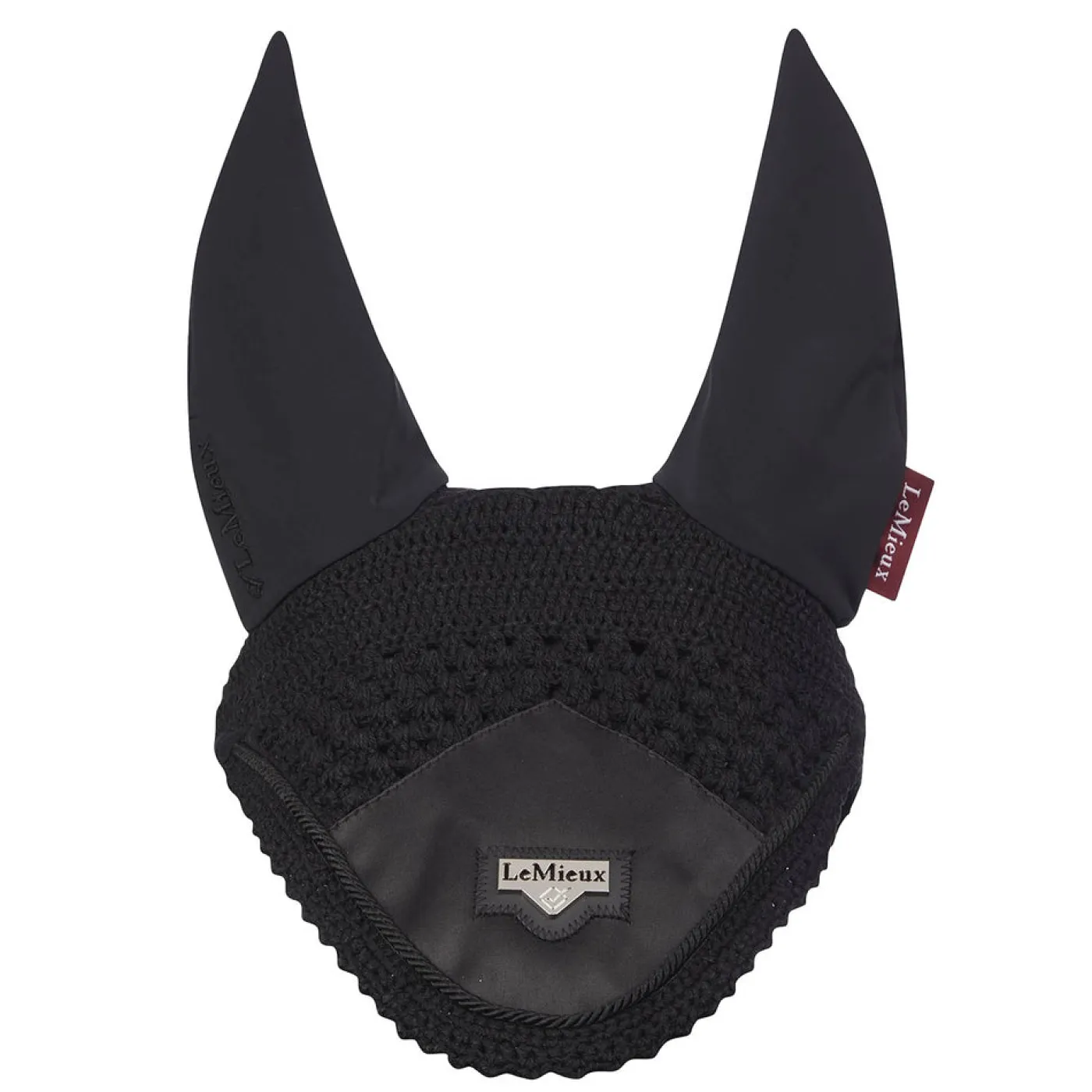 The Lemieux Loire Fly Veil are beautifully hand made from 3-way knitted crochet and a luxurious satin fabric front piece and soft stretch Lycra ears. Complete with the signature LeMieux Loire embossed metal motif.