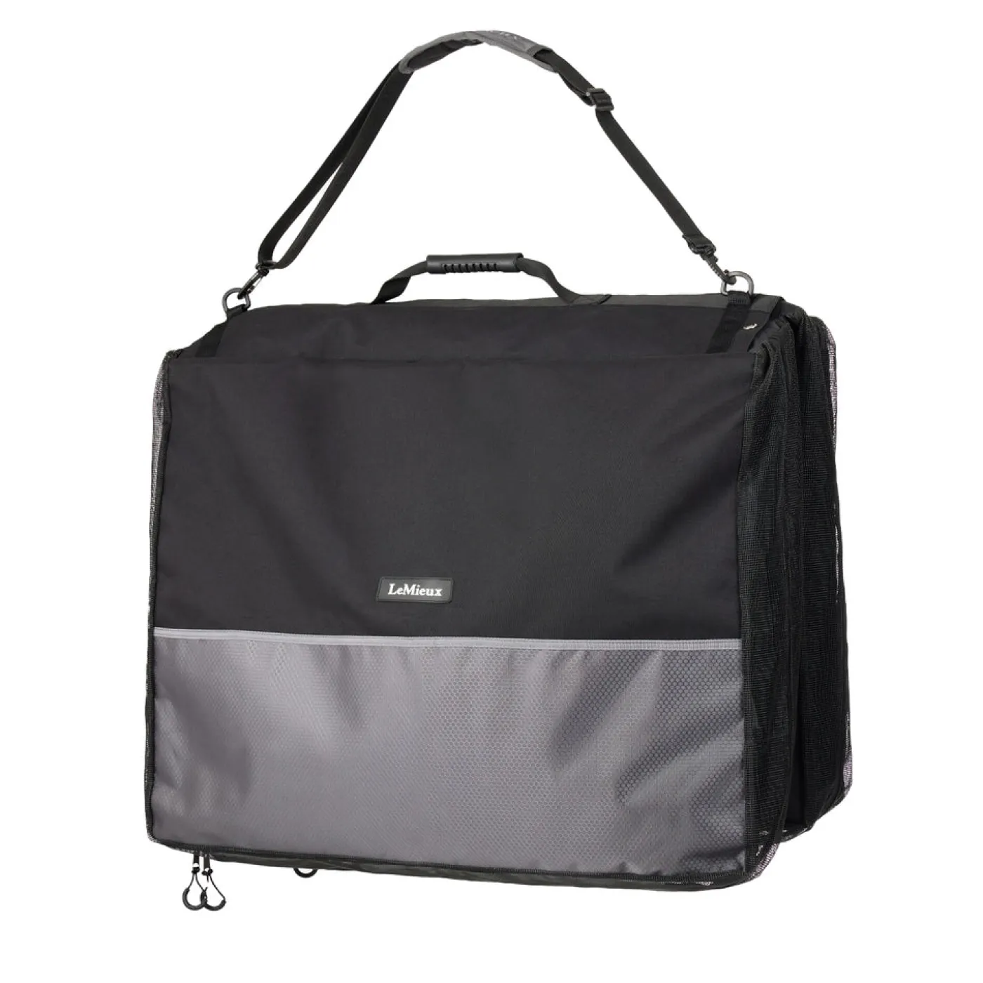 Designed for true LeMieux aficionados, this smart luggage keeps your LeMieux saddle pad collection clean and orderly. It stores, protects and carries saddle pads, numnahs or even lightweight rugs with an internal hanging strap and padded divider. Made of durable ripstop fabric with a reinforced spine, it has a generous two-way zip opening for convenience and mesh air vents to promote airflow. Handy for storage at the yard or while travelling, the durable top carry handle and adjustable shoulder strap make carrying your collection easy.