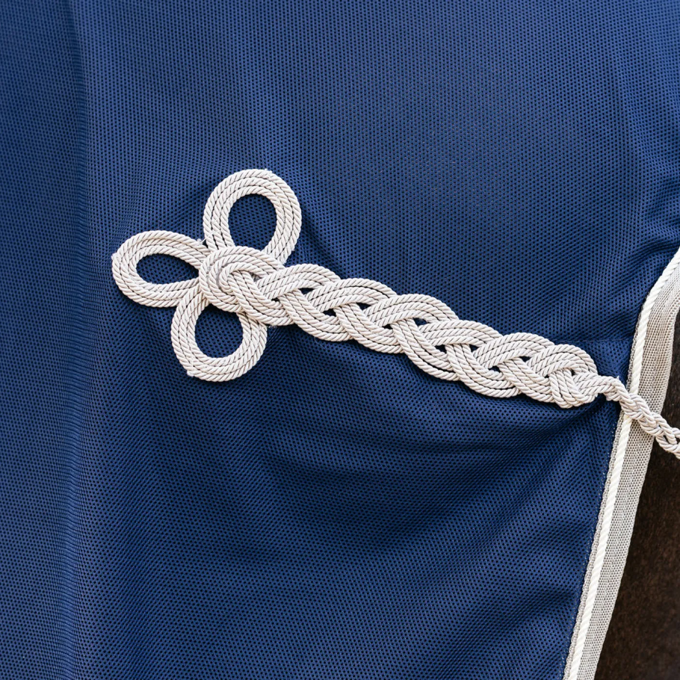 The LeMieux Scrim Sheet is a smart, lightweight mesh dress cooler that’s ideal for use ringside at competitions, shows and events. Throw on after perfecting your grooming to keep your horse dust-free and clean without making them hot. Created in classic colours with smart contrast binding and a traditional braided cord hip ornament, it elevates your look to elite level. An adjustable front strap gives it a stylish look for wearing between classes.