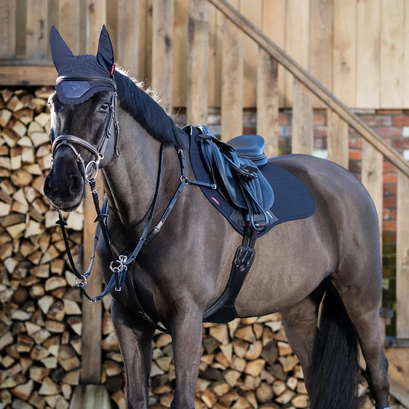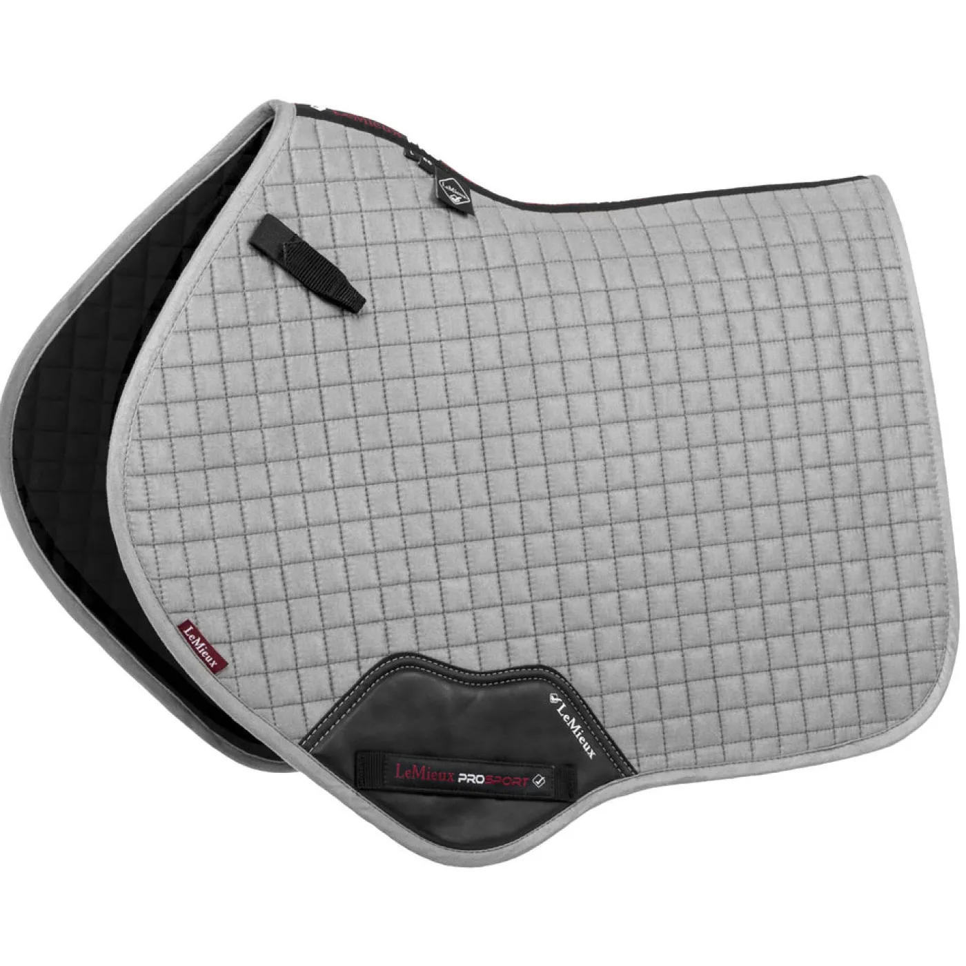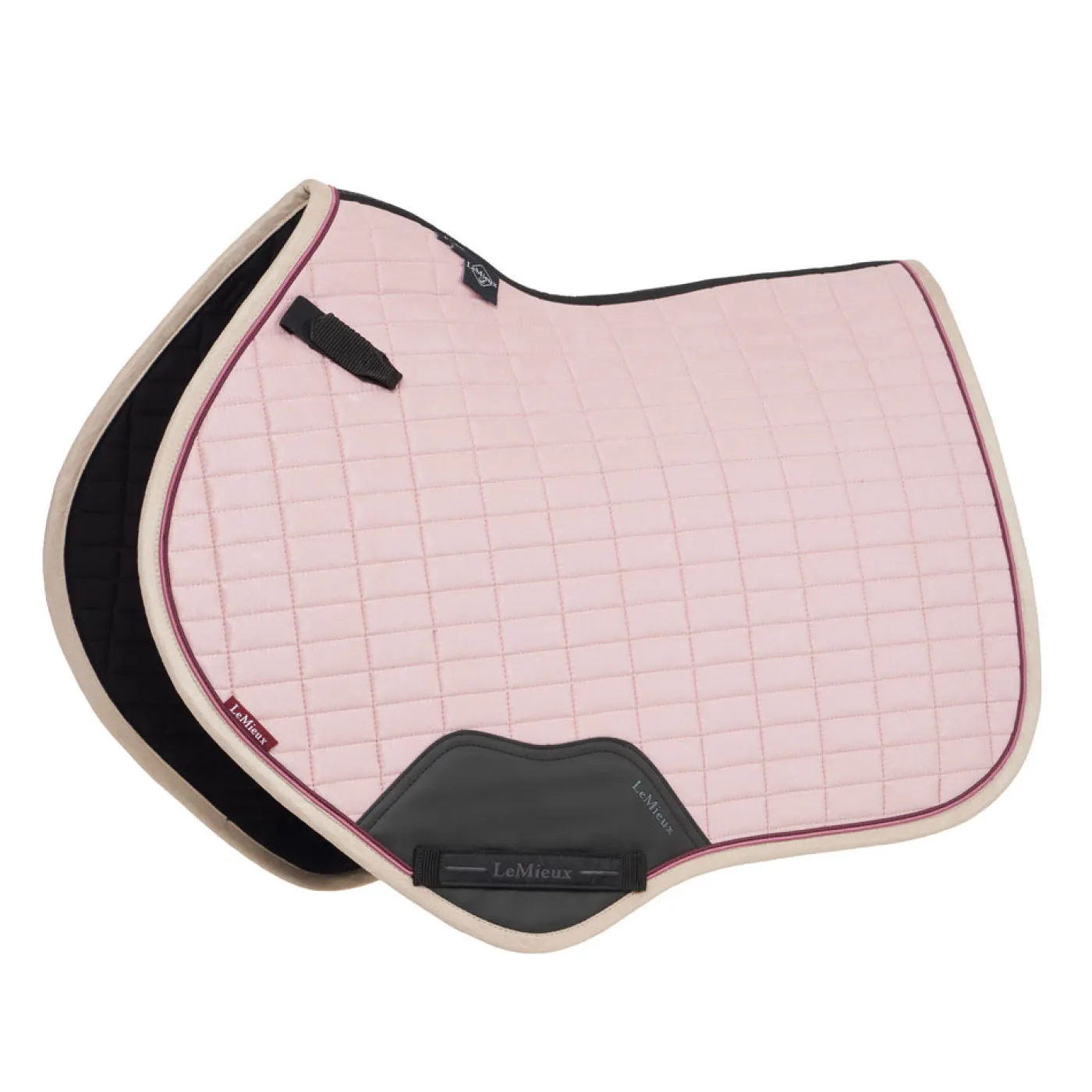 The Lemieux Suede Close Contact Square Pad offers a sleek and professional appearance. Constructed with a suede top and binding, complimented by a super soft Bamboo lining to help absorb and control sweat under the saddle. Features PU leather girth protection with a close contact cut, high wither, and d-ring tabs. Complete with girth keepers incorporated with inner locking loops.