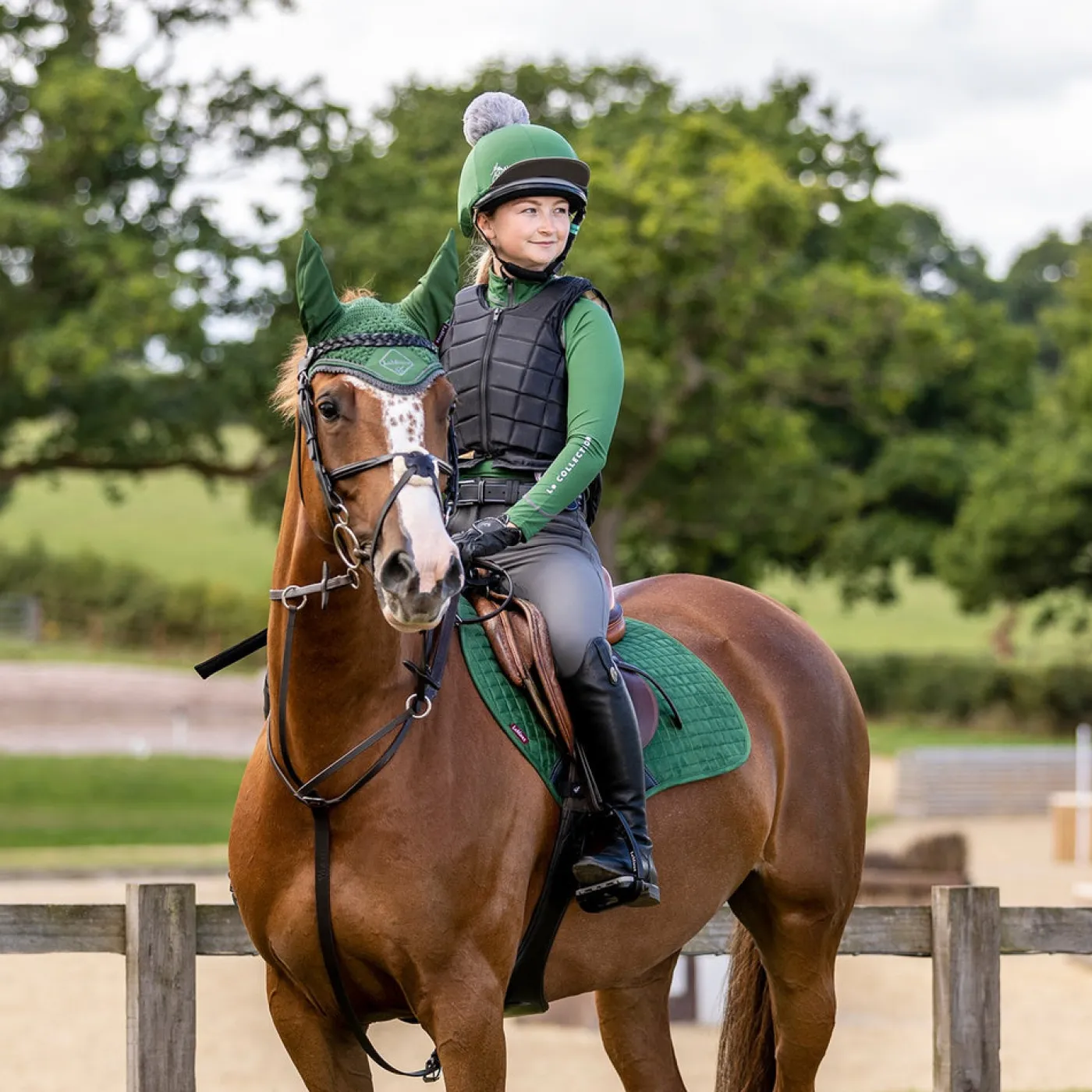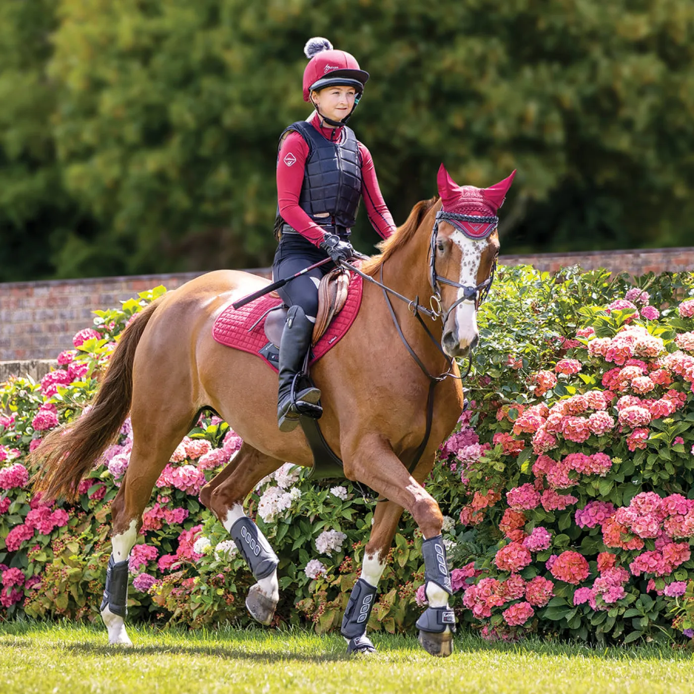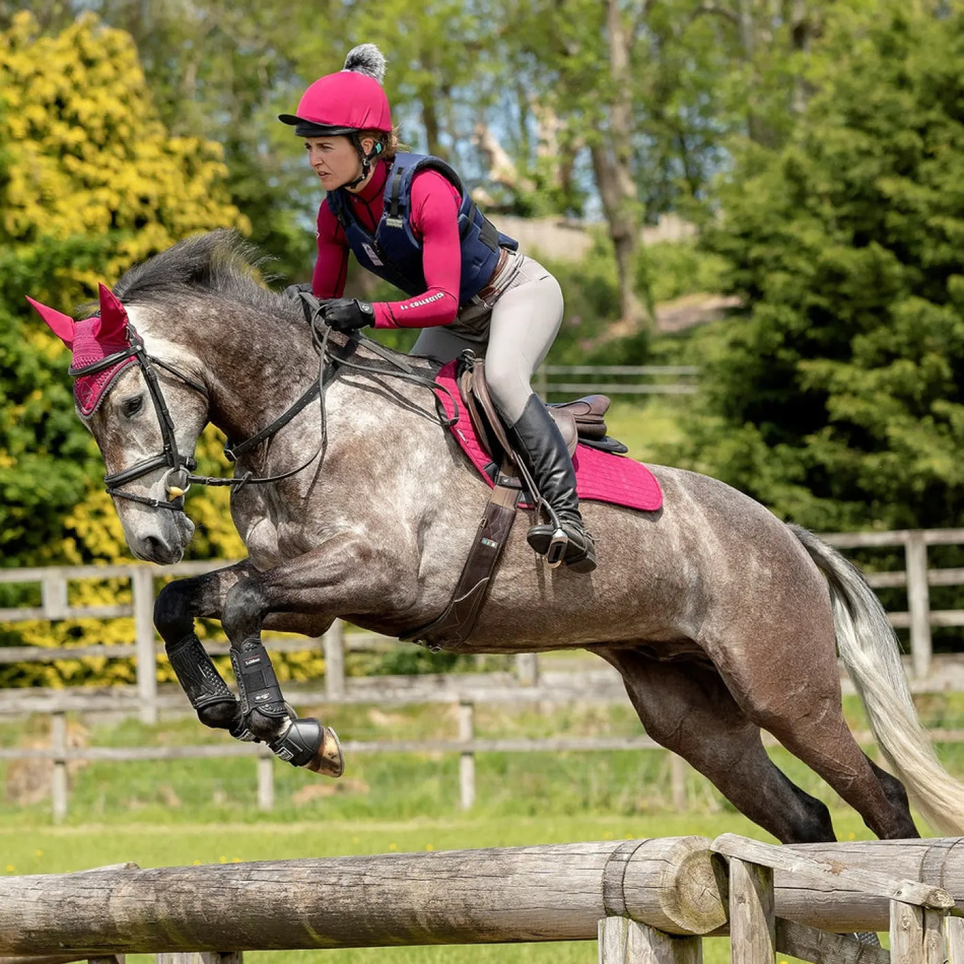 The Lemieux Suede Close Contact Square Pad offers a sleek and professional appearance. Constructed with a suede top and binding, complimented by a super soft Bamboo lining to help absorb and control sweat under the saddle. Features PU leather girth protection with a close contact cut, high wither, and d-ring tabs. Complete with girth keepers incorporated with inner locking loops.