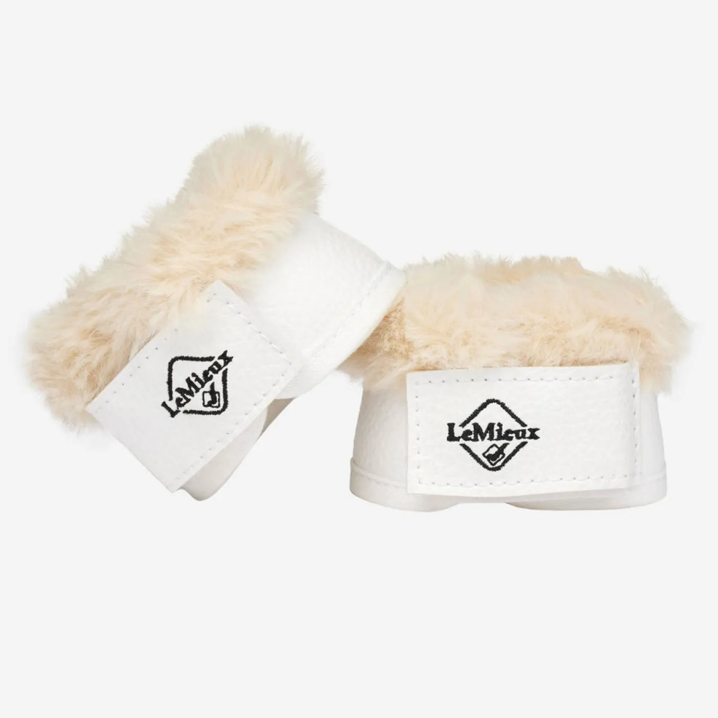 Boot up for perfect dressage with your toy pony. These fleece-edged white over reach boots will protect your toy pony’s hooves while they prance and dance. Outside the competition ring, they’re also useful for schooling, warm-ups and travel in your toy pony’s carry-case horsebox. Crafted just like the real thing, they feature LeMieux’s WrapRound closure and an embroidered LeMieux logo. Made in faux leather and faux sheepskin, these over reach boots are adjustable and easy for little equestrians to learn how to fit and remove.