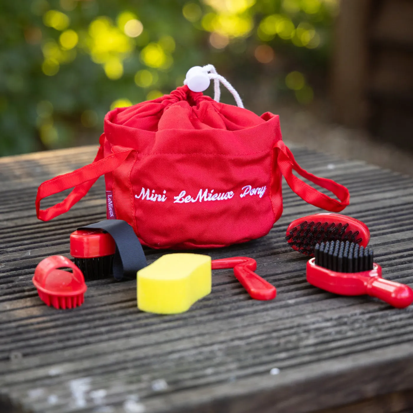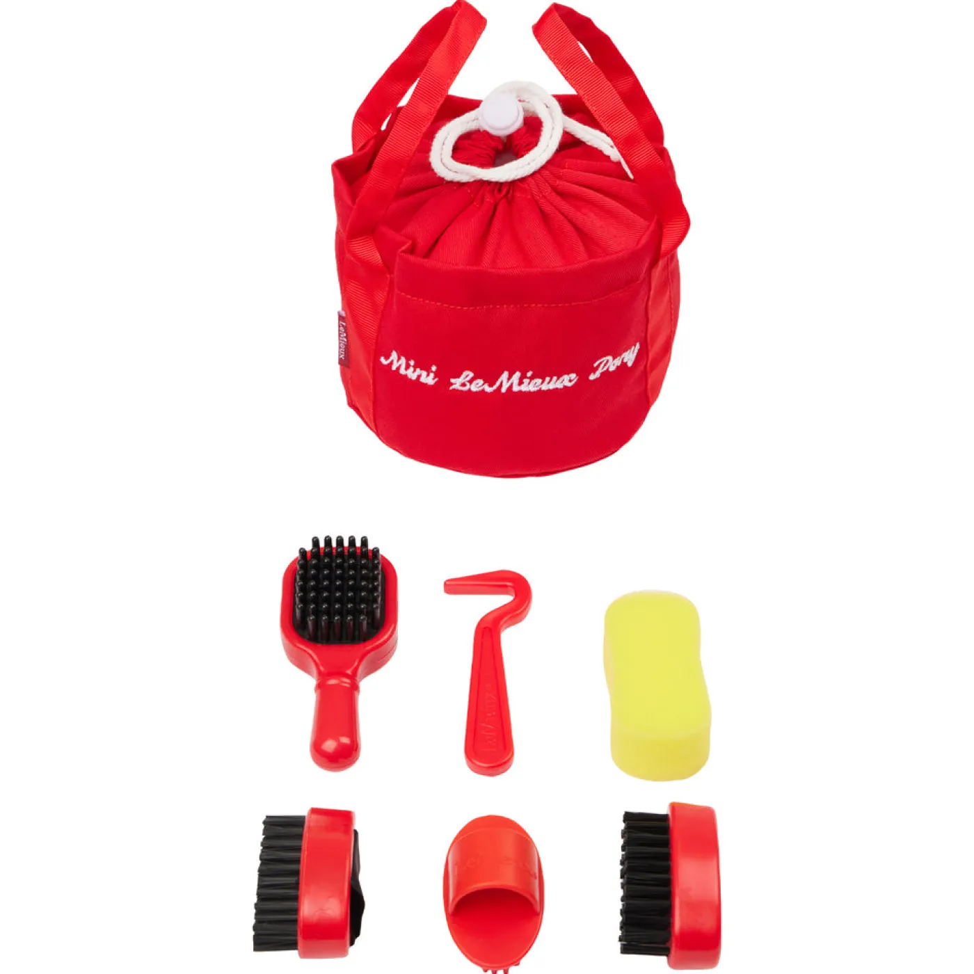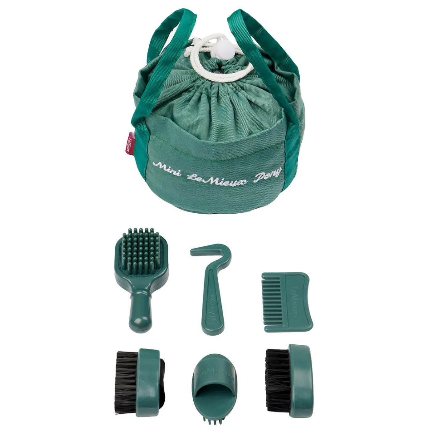 Keep your Mini LeMieux Pony brushed, clean and ready for action with this perfect miniature grooming kit. Kit includes brushes, a curry comb, sponge, mane comb and hoof pick all in a neat grooming bag to take wherever you go. Suitable for ages 3+.